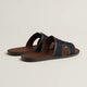 Sandal in denim and calfskin with iconic "H" cut-out detail.