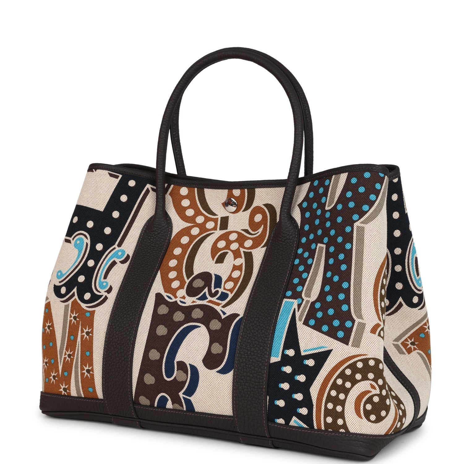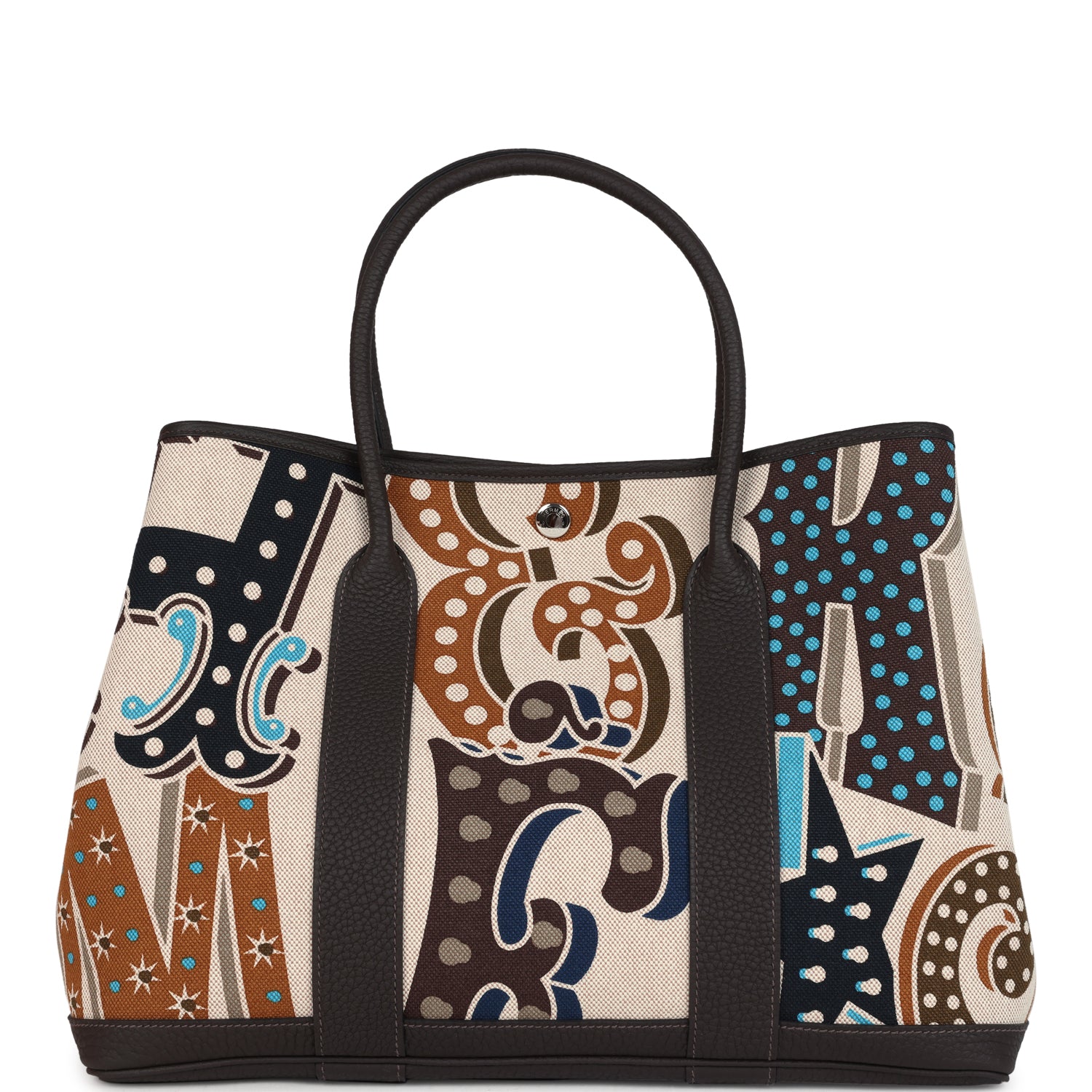 Garden Party 36 Electrique Ecru and Beige Multi Toile H and Ebene Negonda Palladium Hardware