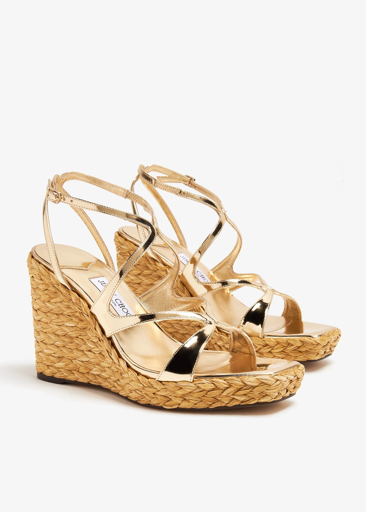 Inject a dose of elegance to your summer wardrobe with these Ayla 110 wedge sandals from Jimmy Choo. Made from patent leather with a 110mm raffia wedge heel, they feature elegant curved straps that are complemented by a modern square toe and 20mm platform height.