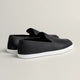 Loafer in suede goatskin with braided leather detail and rubber sole.