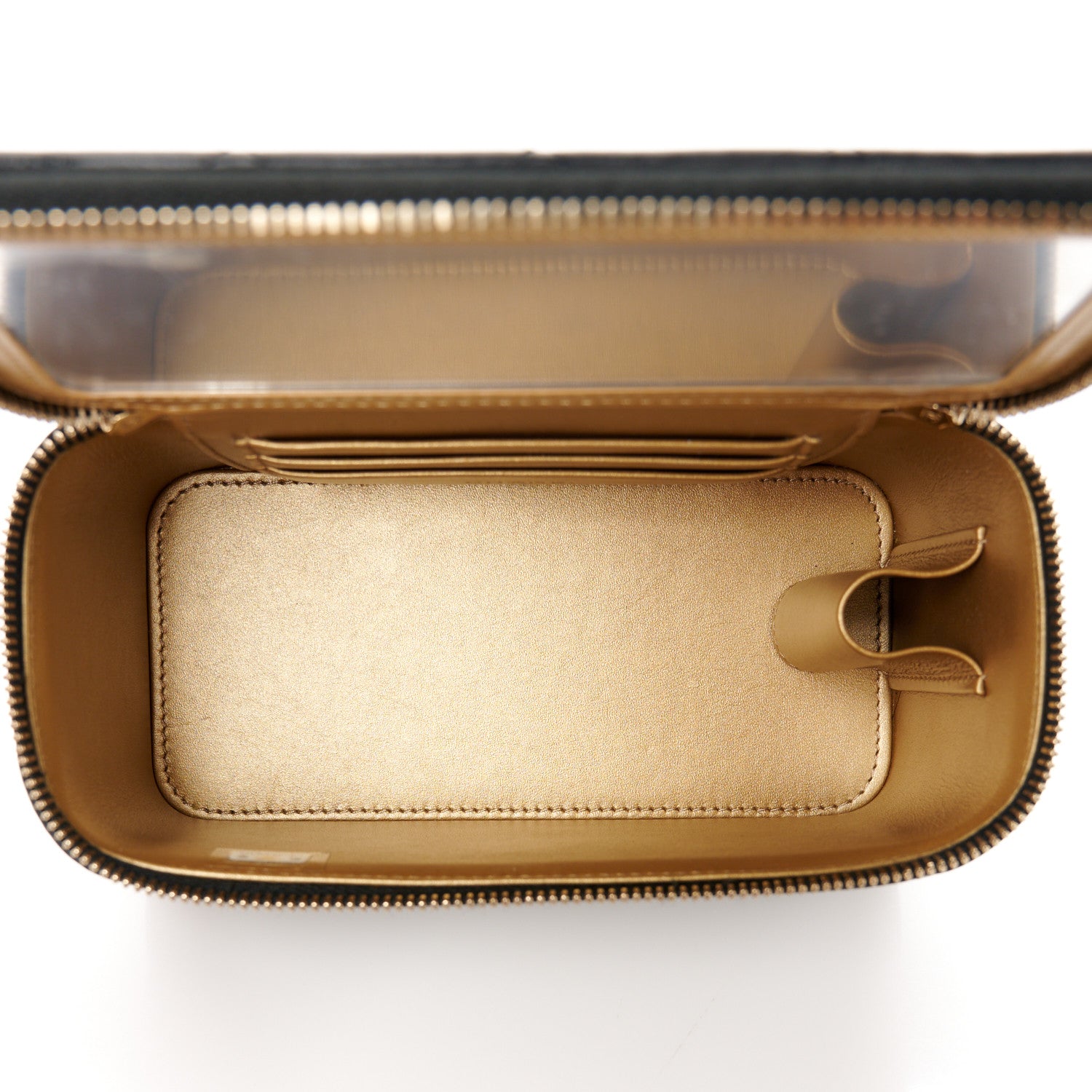 Lambskin Quilted Pearl Crush Small Vanity Case With Chain Black