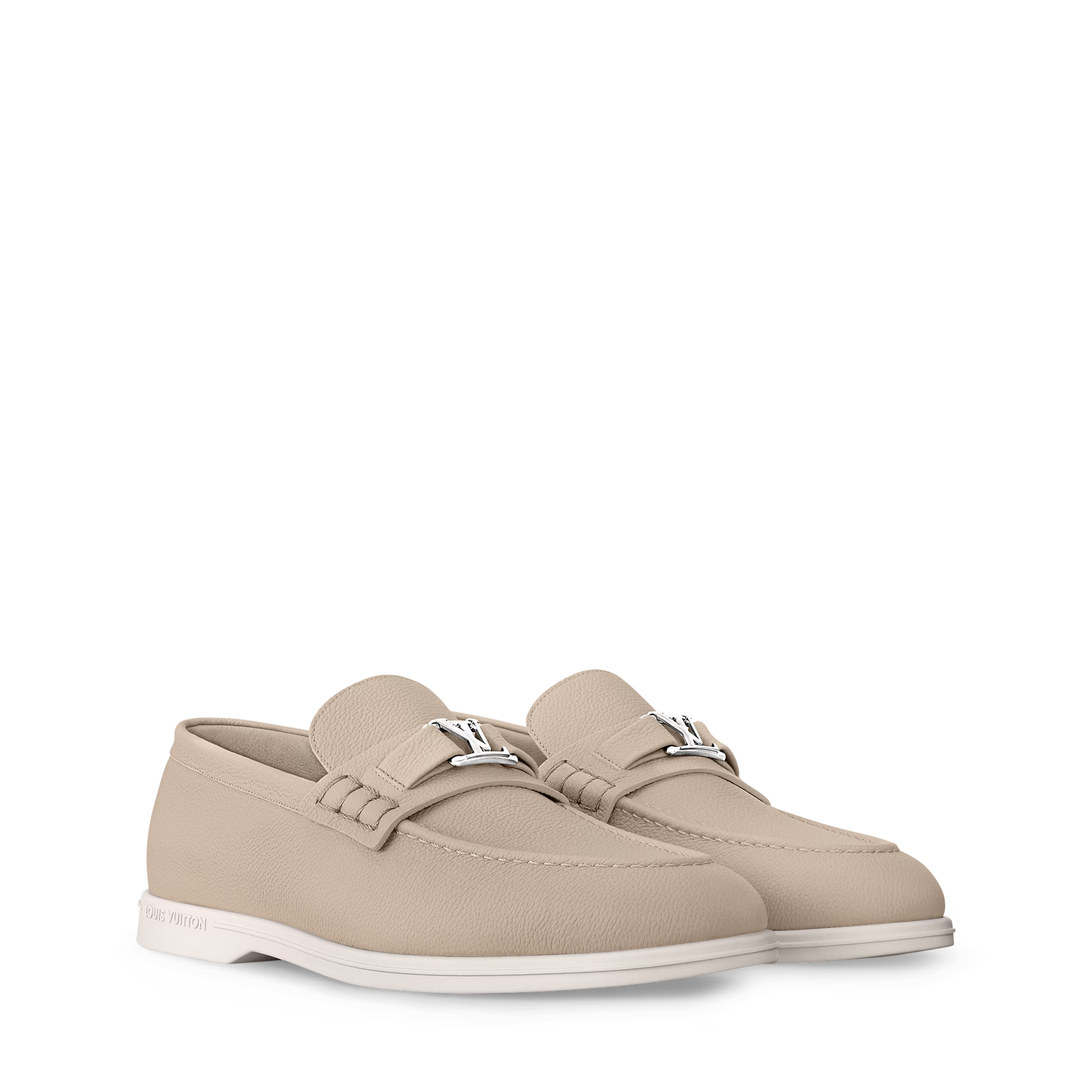 This version of the Estate loafer is crafted from grained calf leather for a smart look and a supple feel. This relaxed, slip-on model is characterized by its lightweight outsole in white rubber, which is debossed with the Louis Vuitton signature. The vamp is also signed, with a metal LV Initials accessory.