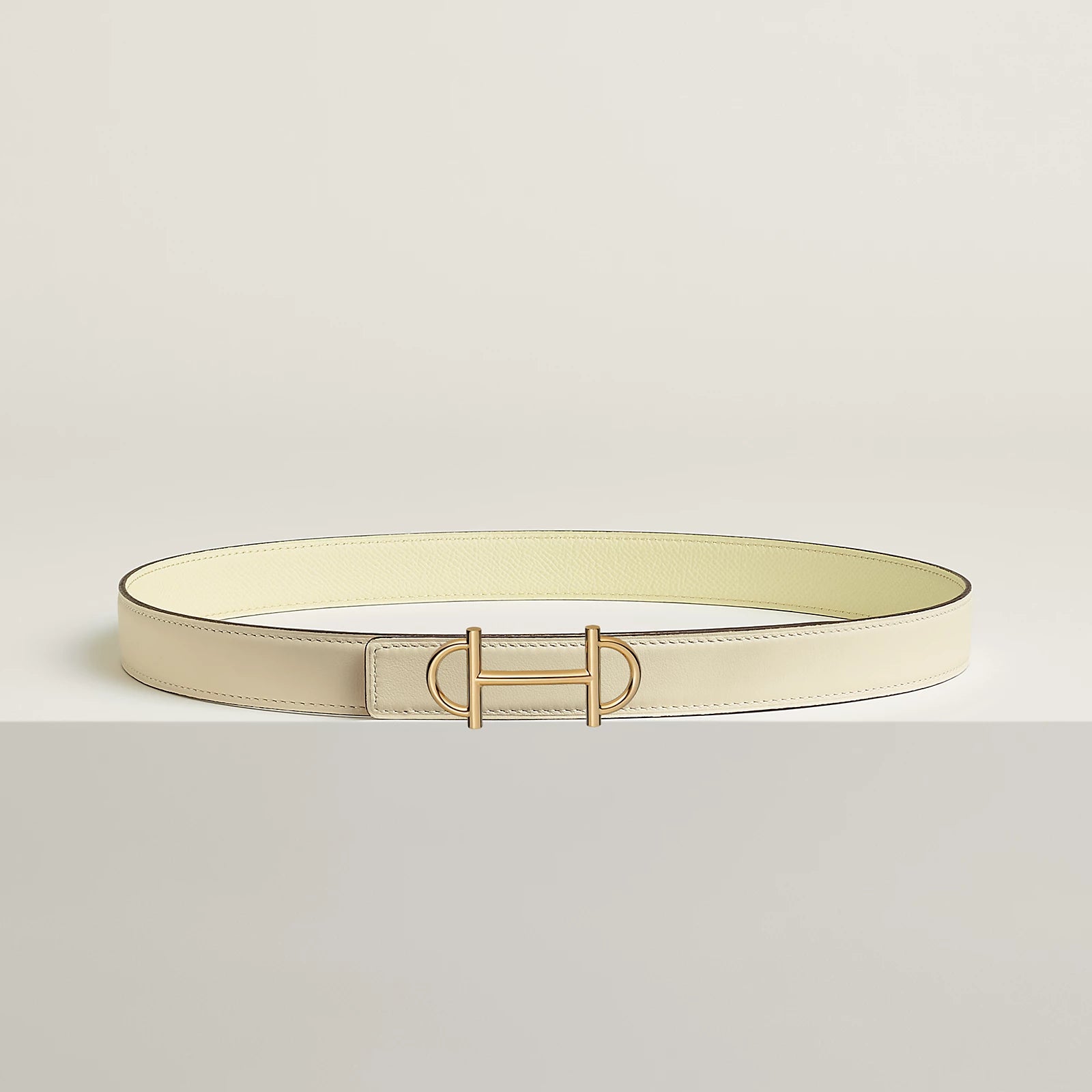 NATUREL SABLE / ORANGE FIELD-SÉSAME / VERT CYPRÈS GAMMA BELT BUCKLE & REVERSIBLE LEATHER STRAP 24 MM