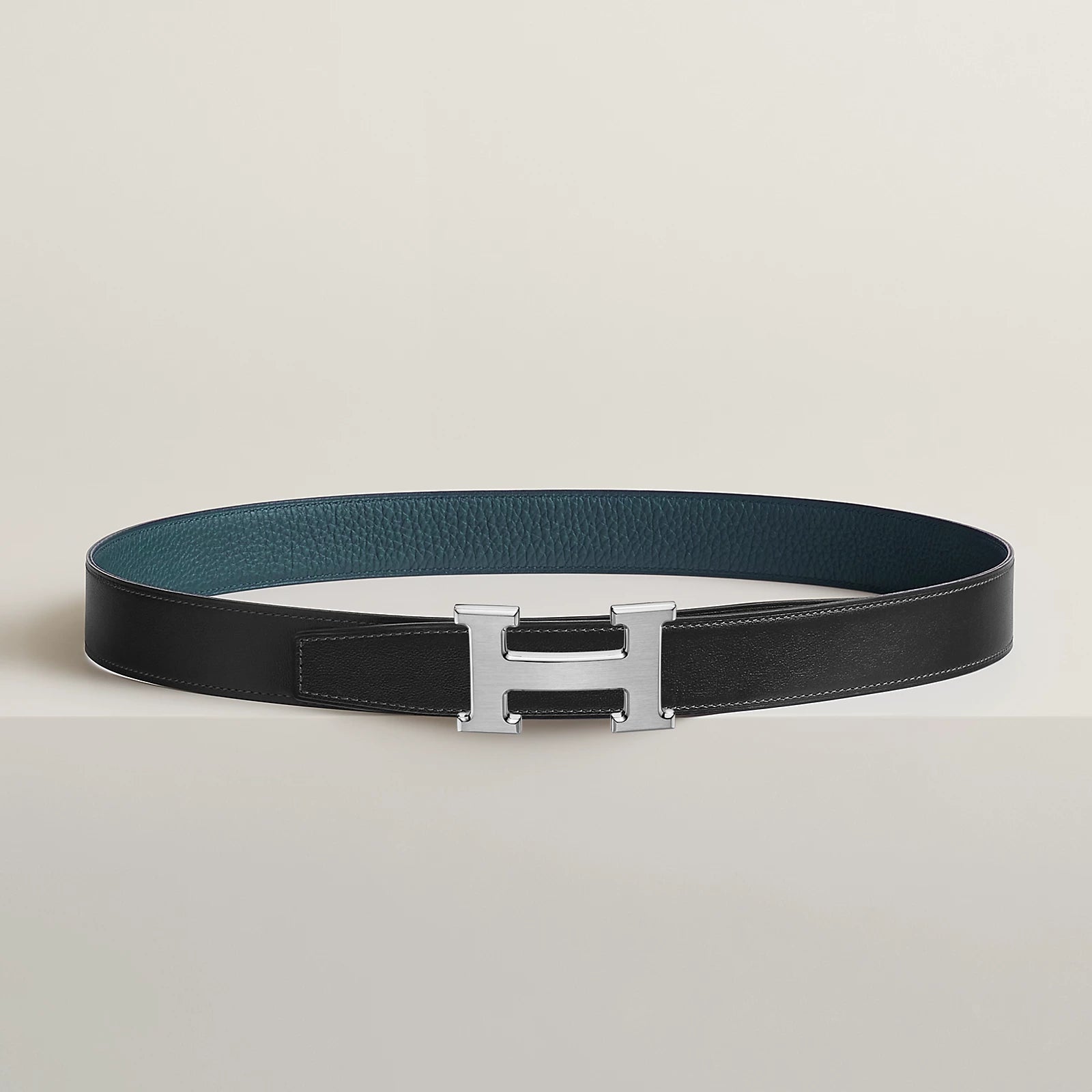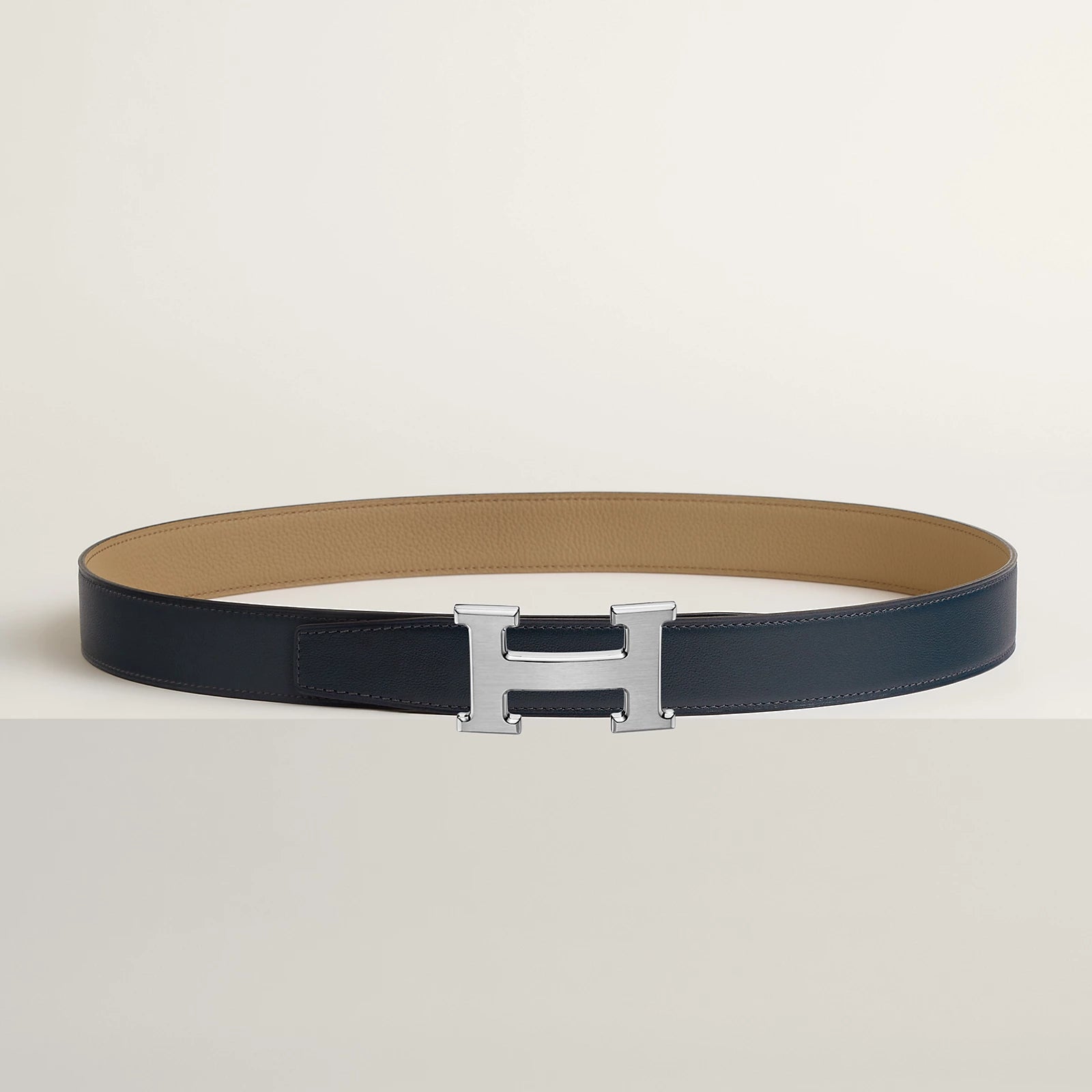 NOIR / GOLD-BLEU MARINE / ÉCORCE H BELT BUCKLE & REVERSIBLE LEATHER STRAP 32 MM