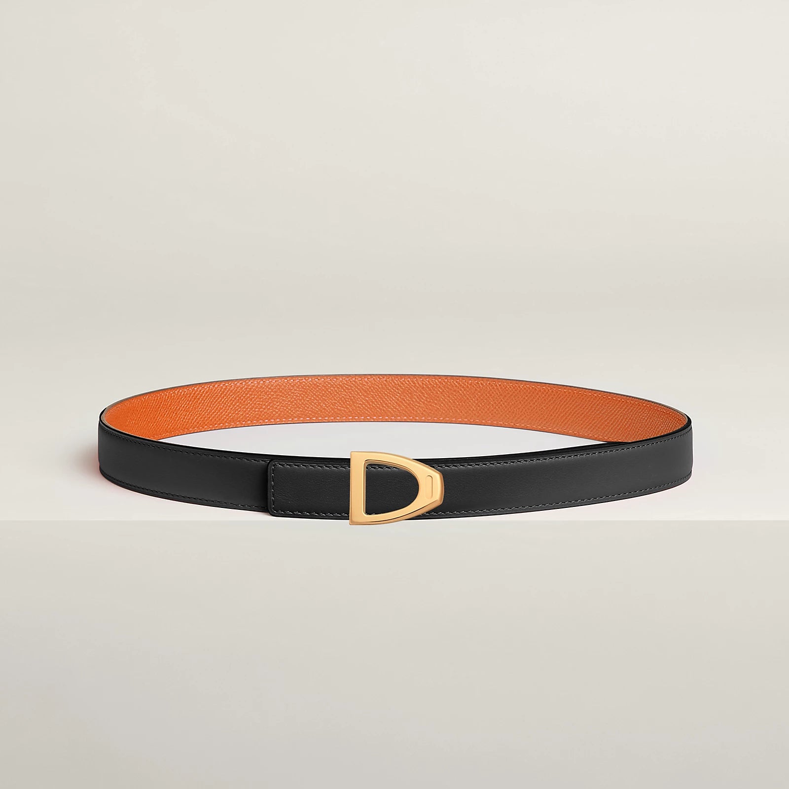 Inspired by the equestrian world, this buckle is shaped like a stirrup, the Hermès' emblem. A delicate Hermès engraving adorns the edge of the buckle.