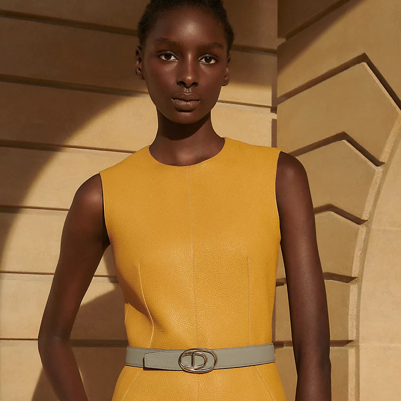 A buckle that emanates sculptural elegance through the contrast between the brushed finish and the polished parts that seem as if chiseled into the metal.