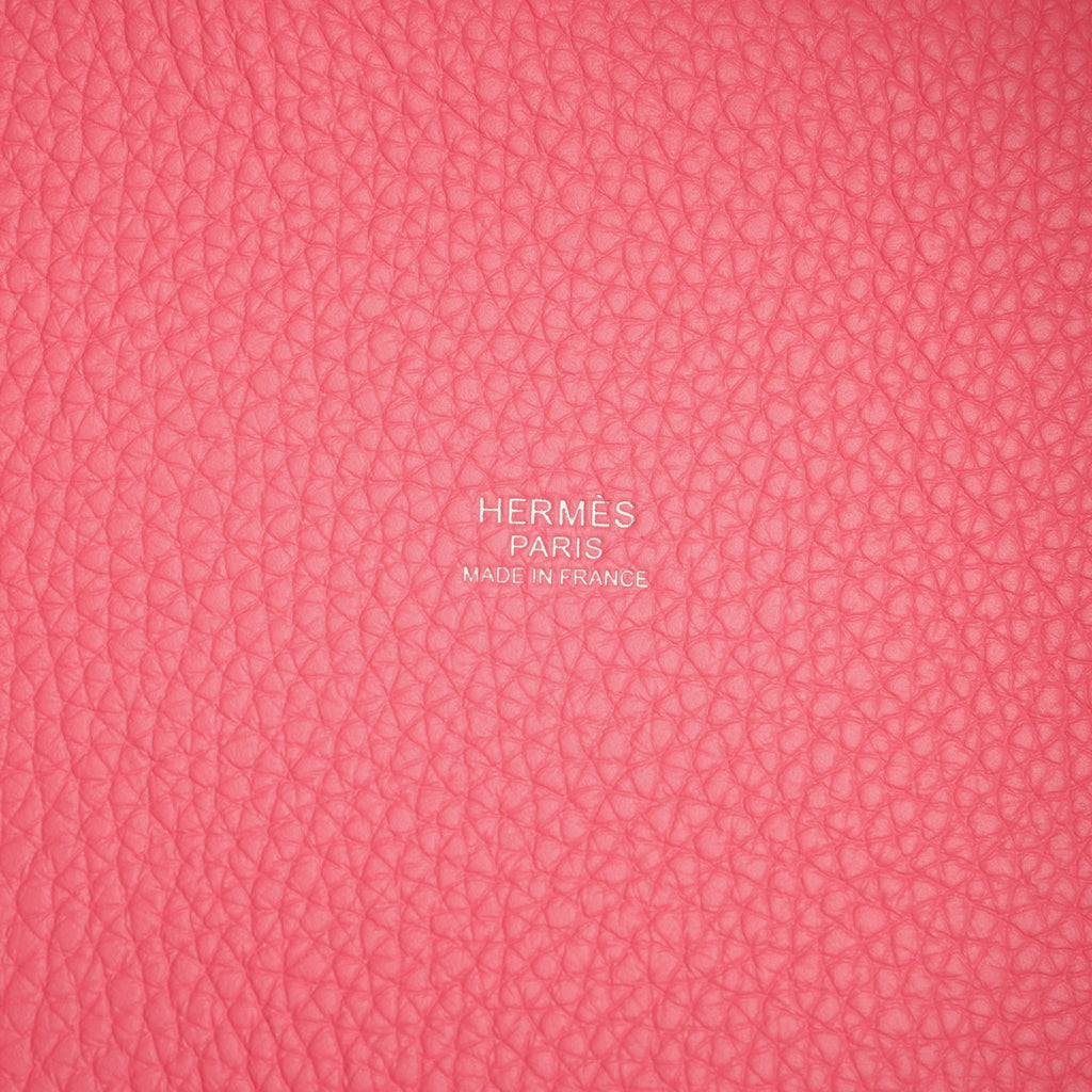 This Picotin 18 is in Rose Azalee clemence leather with palladium hardware and has tonal stitching with two top handles.