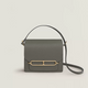 This Hermès Mini Sac Roulis is in New White evercolor leather with palladium hardware and features tonal stitching, front palladium plated H clasp, front flap and crossbody strap.