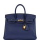 Birkins 25 Bleu Saphir Verso Novillo Gold Hardware