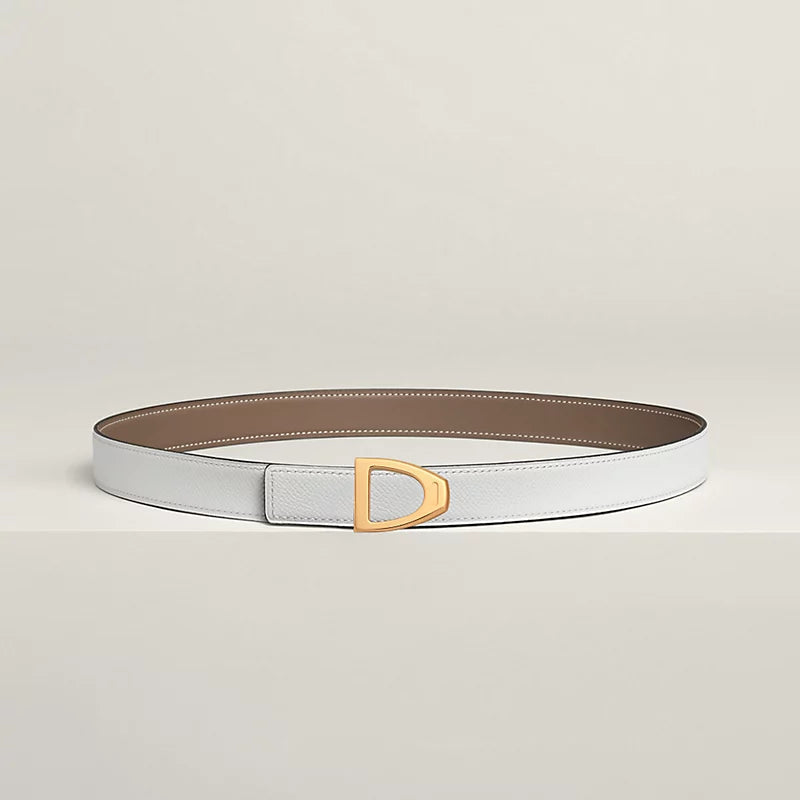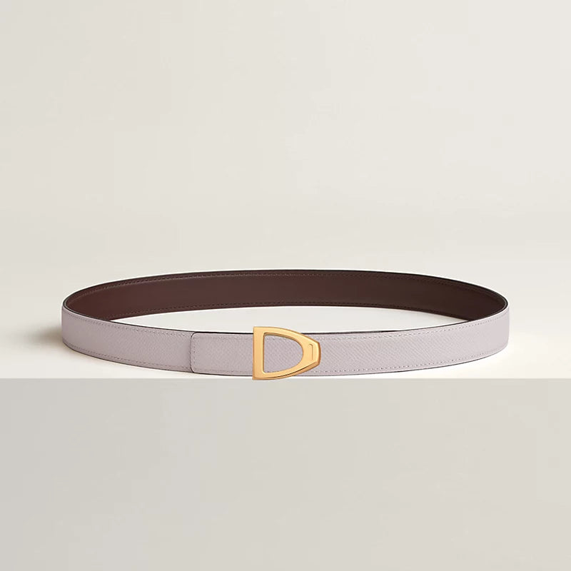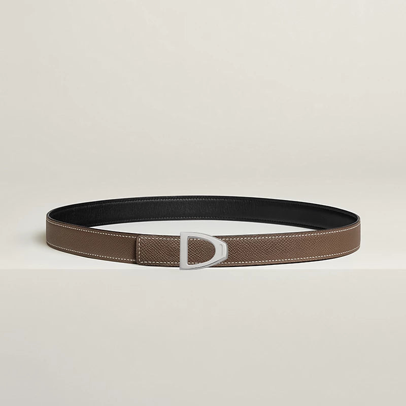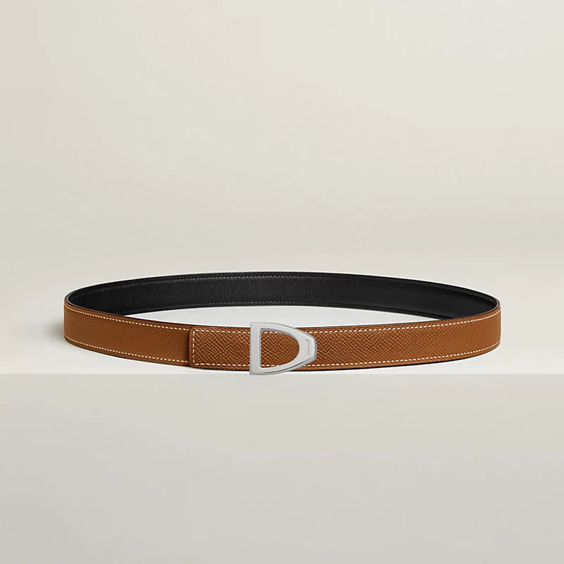 Inspired by the equestrian world, this buckle is shaped like a stirrup, the Hermès' emblem. A delicate Hermès engraving adorns the edge of the buckle.