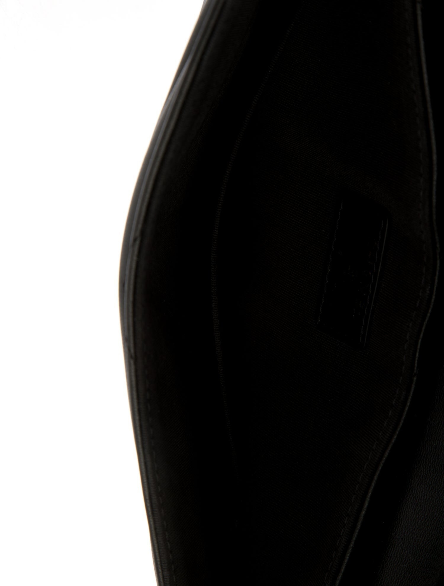 This is an authentic CHANEL Lambskin Quilted Medium Flap Cosmetic Case in Black. This chic clutch wallet is crafted of diamond quilted leather in black with a small Chanel CC logo in gold on the front. The zipper top opens to a partitioned burgundy fabric and leather interior with card slots, patch pockets and a central zipper compartment.
