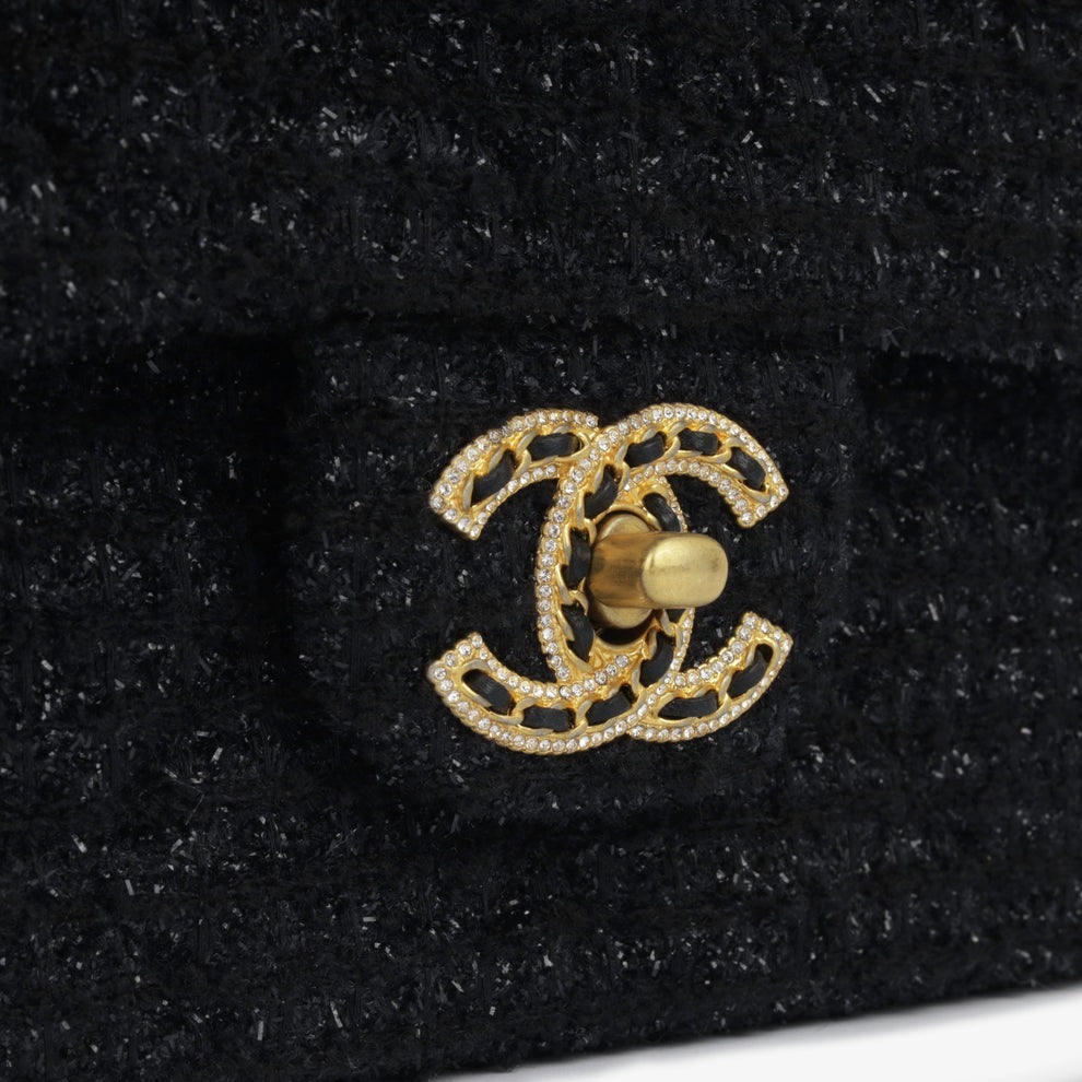 Chanel Black Square Tweed CC Flap Crossbody Bag