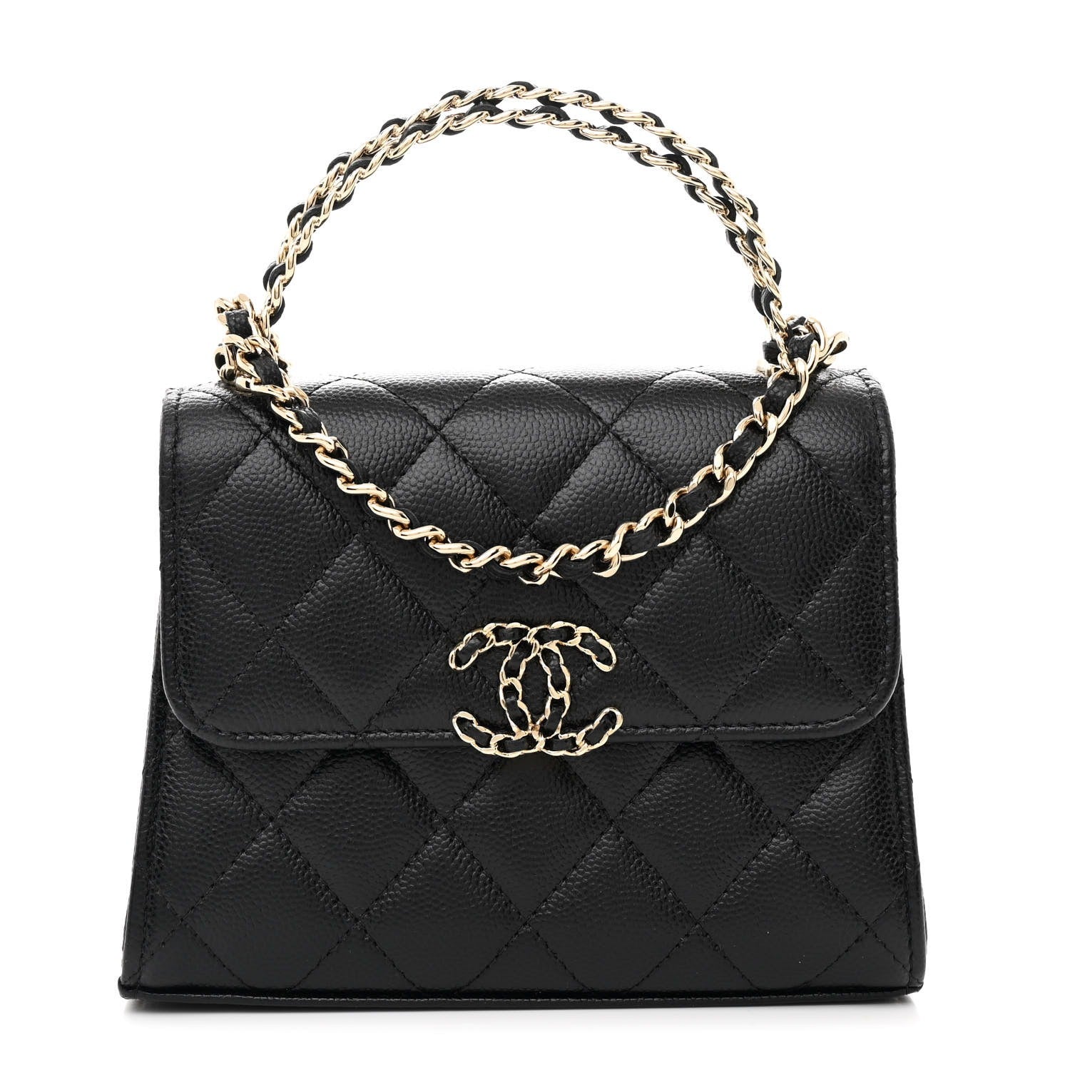 Grained Shiny Calfskin & Gold-Tone Metal Clutch with Chain