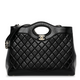 This is an authentic CHANEL Shiny Aged Calfskin Quilted Large 31 Shopping Bag in Black. This stylish tote is crafted of padded diamond quilted calfskin in black with smooth leather trim in black. The bag features black handles, a long black rolled shoulder strap, and a gold Chanel CC turn lock. The top is open to a black fabric interior with zipper pockets.