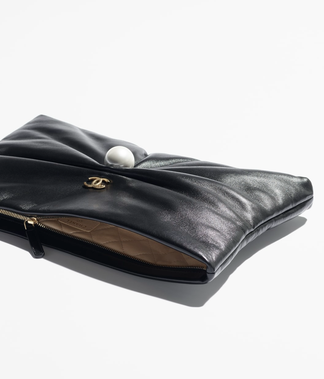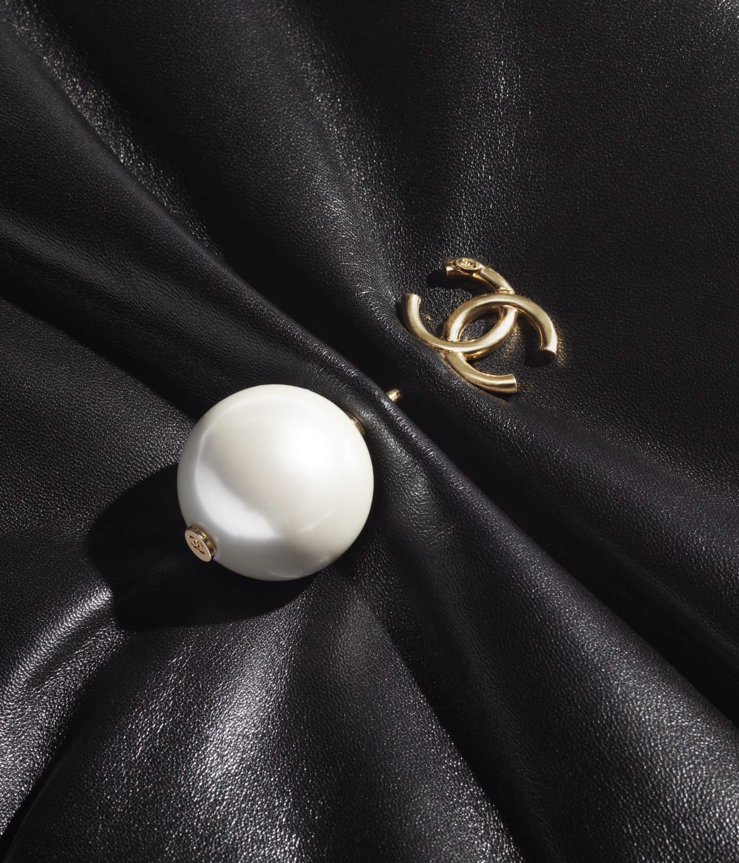 - Shiny Lambskin, Imitation Pearl & Gold-Tone Metal