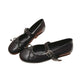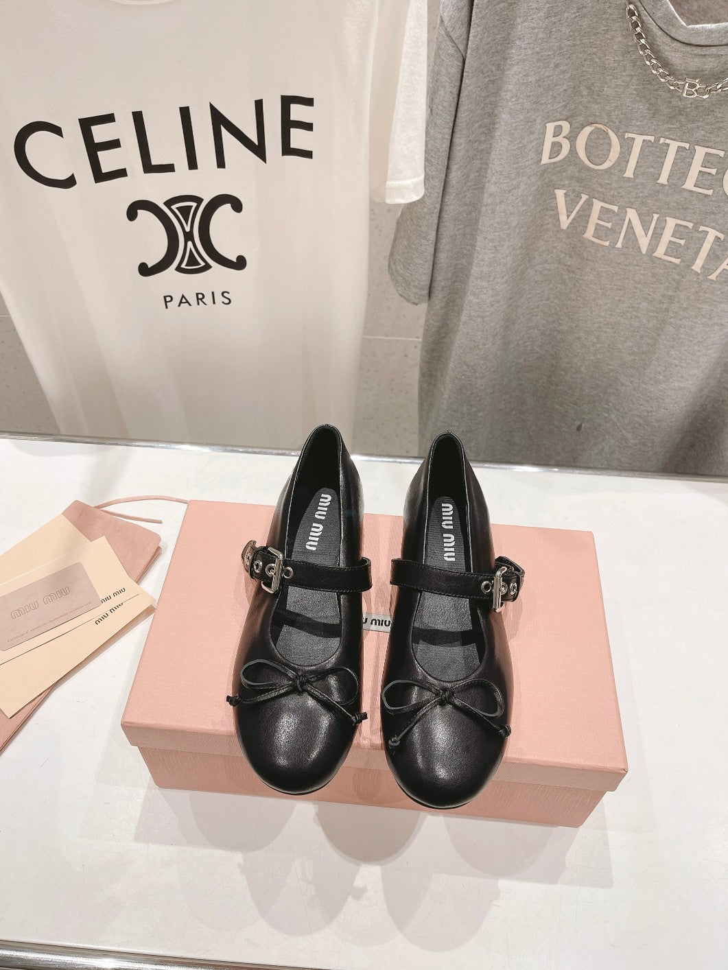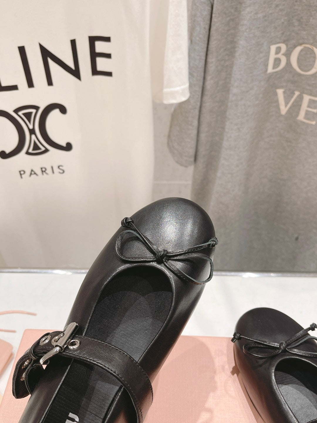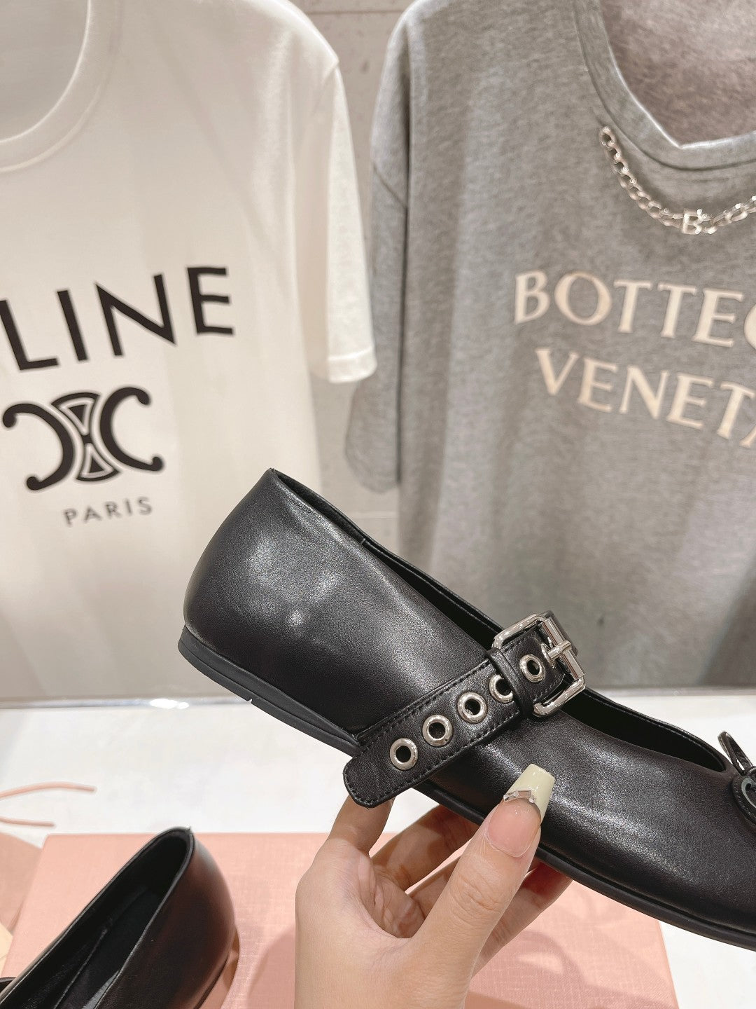 This shoe features an elegant classic design, combining the Beige color of the upper leather, with a shiny black front that adds the shoe with a belt and is made in the form of a silver metal chain with a small detail in the shape of a pearl or button when closing, which gives a touch of sophistication and elegance.