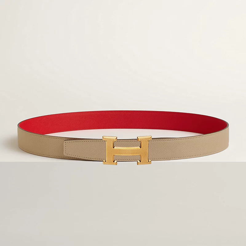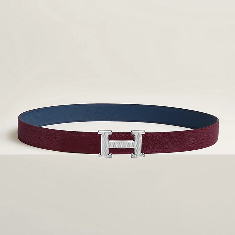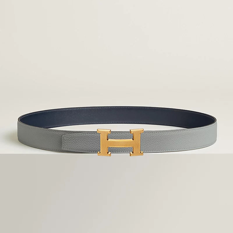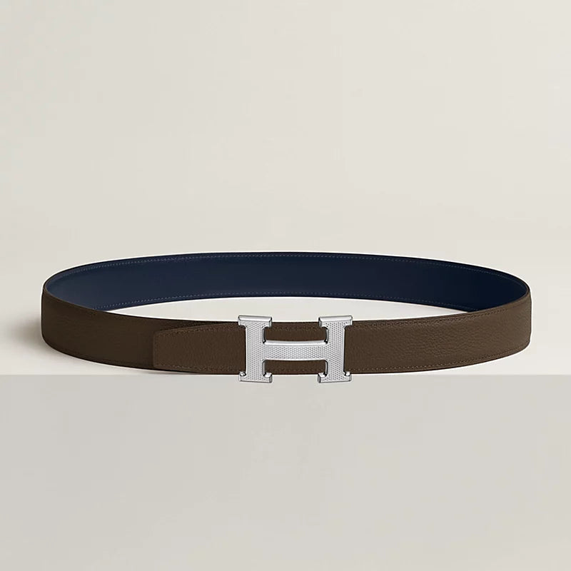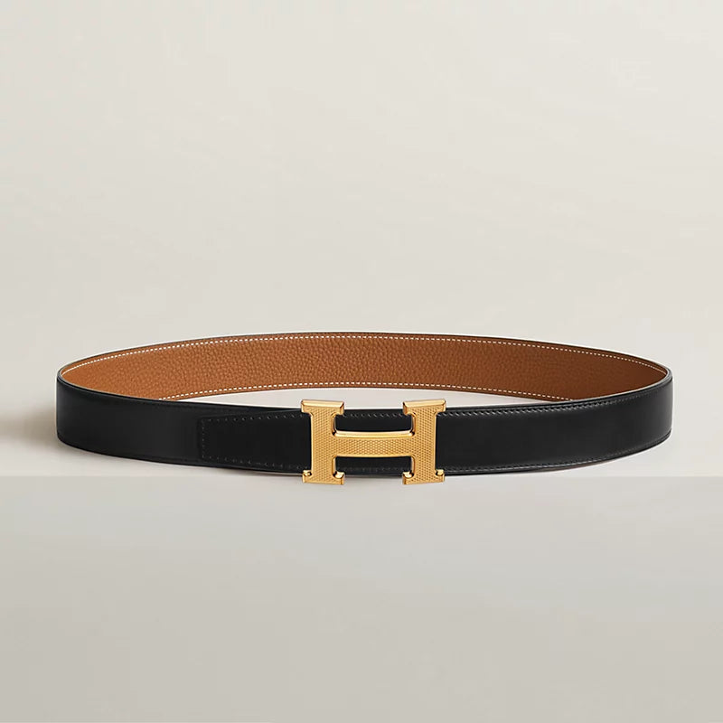 H Guillochee Belt Buckle & Reversible Leather Strap 32 MM