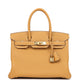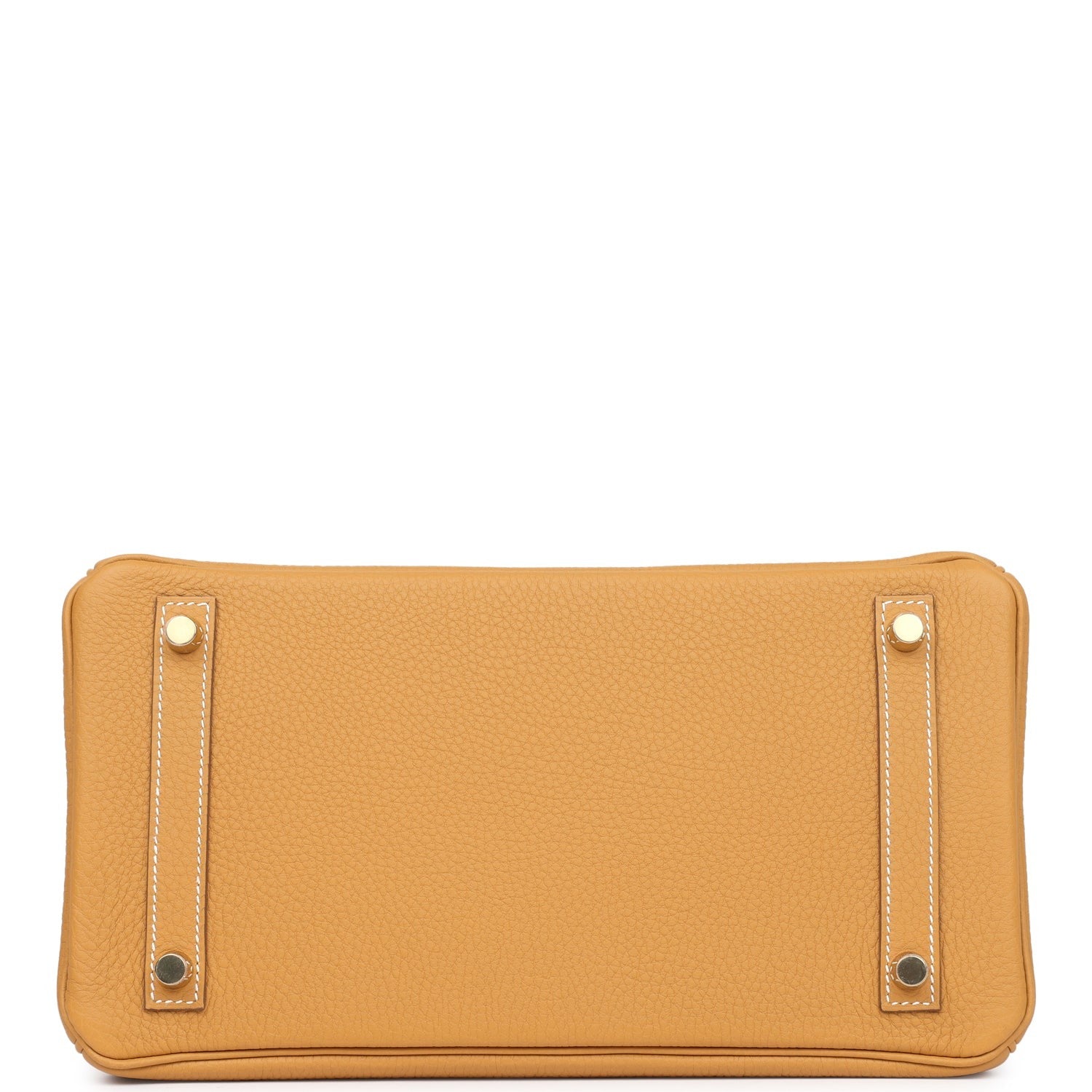 This Birkin is in Natural Sable togo leather with gold hardware and has contrast stitching, front flap, two straps with center toggle closure, clochette with lock and two keys, and double rolled handles.
