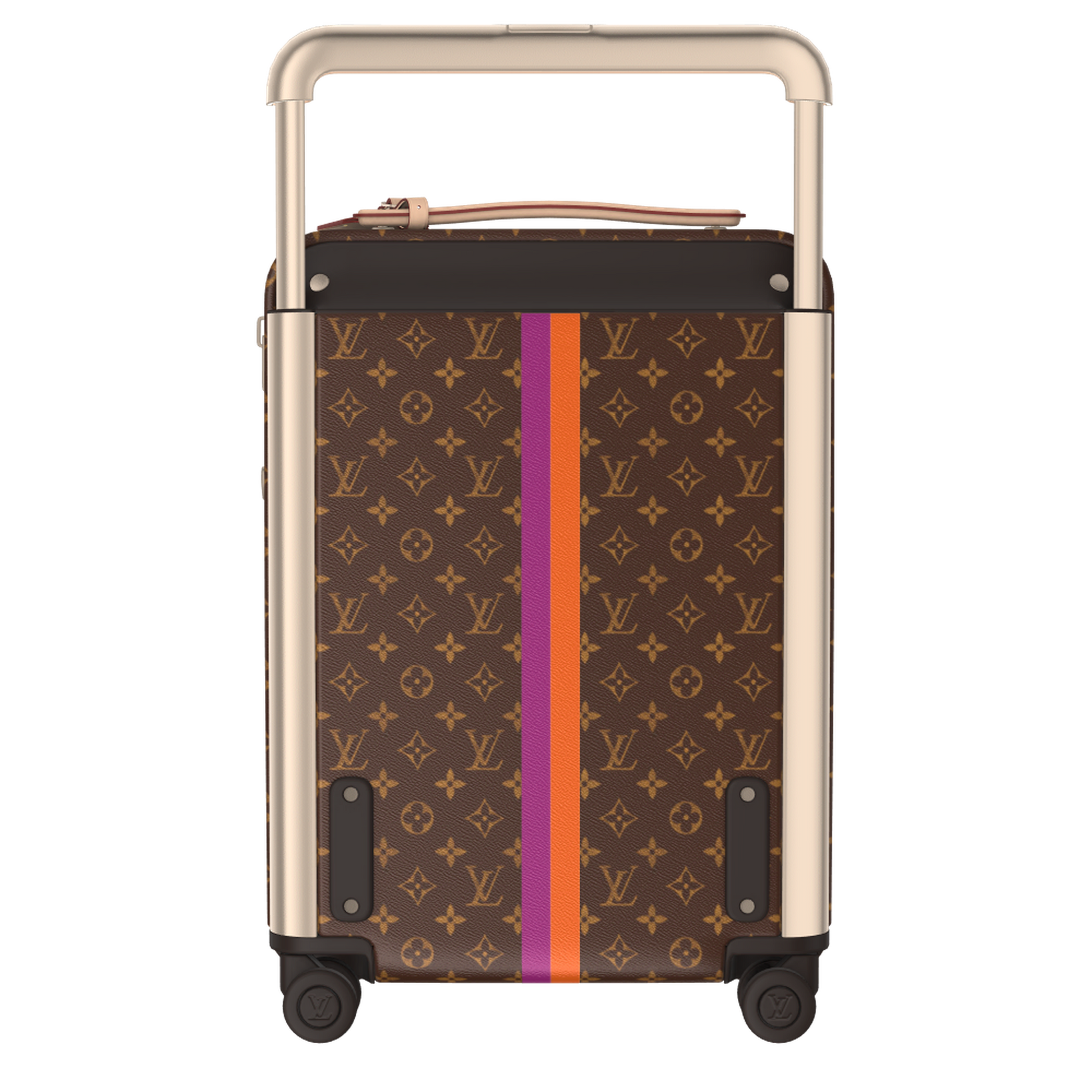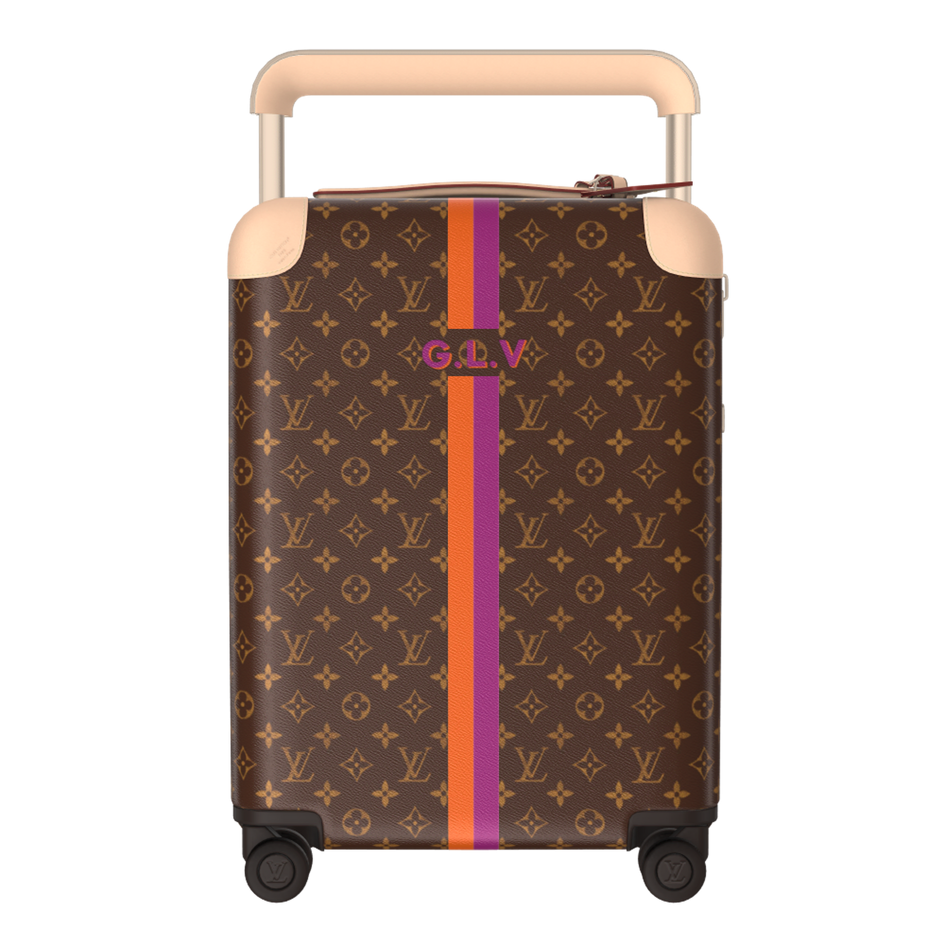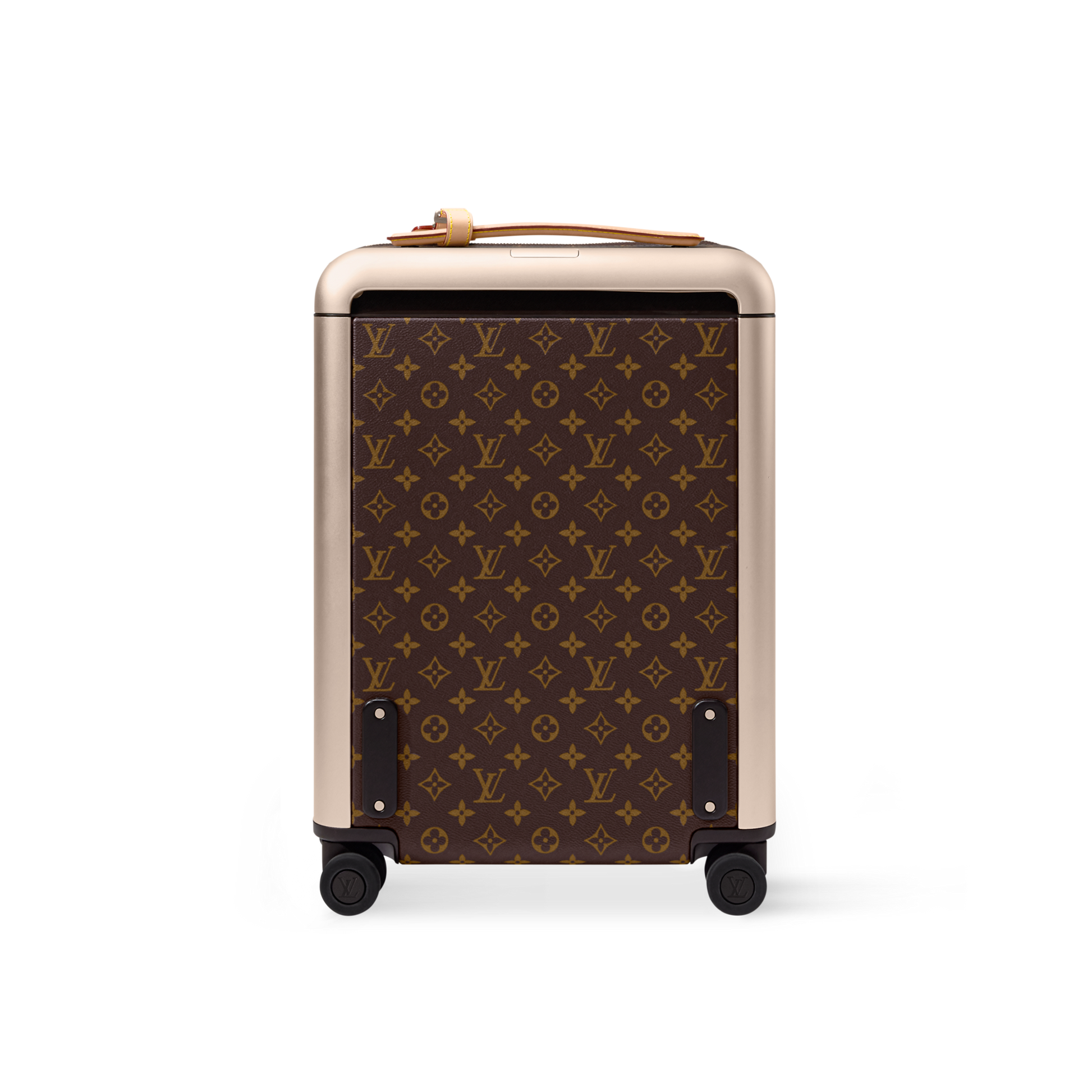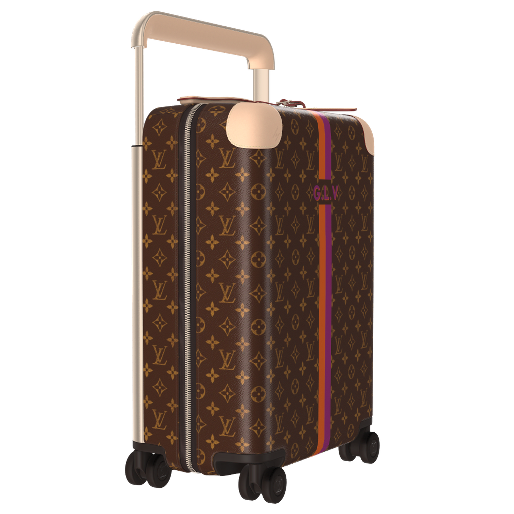 Imagined by renowned industrial designer Marc Newson, this lightweight 4-wheeled carry-on can be personalized as part of the Mon Monogram program. Add stripes, initials and patches to the Monogram canvas to create a unique Louis Vuitton bag. The Horizon 50 rolling case has a completely flat interior thanks to its large external cane, making it roomy.