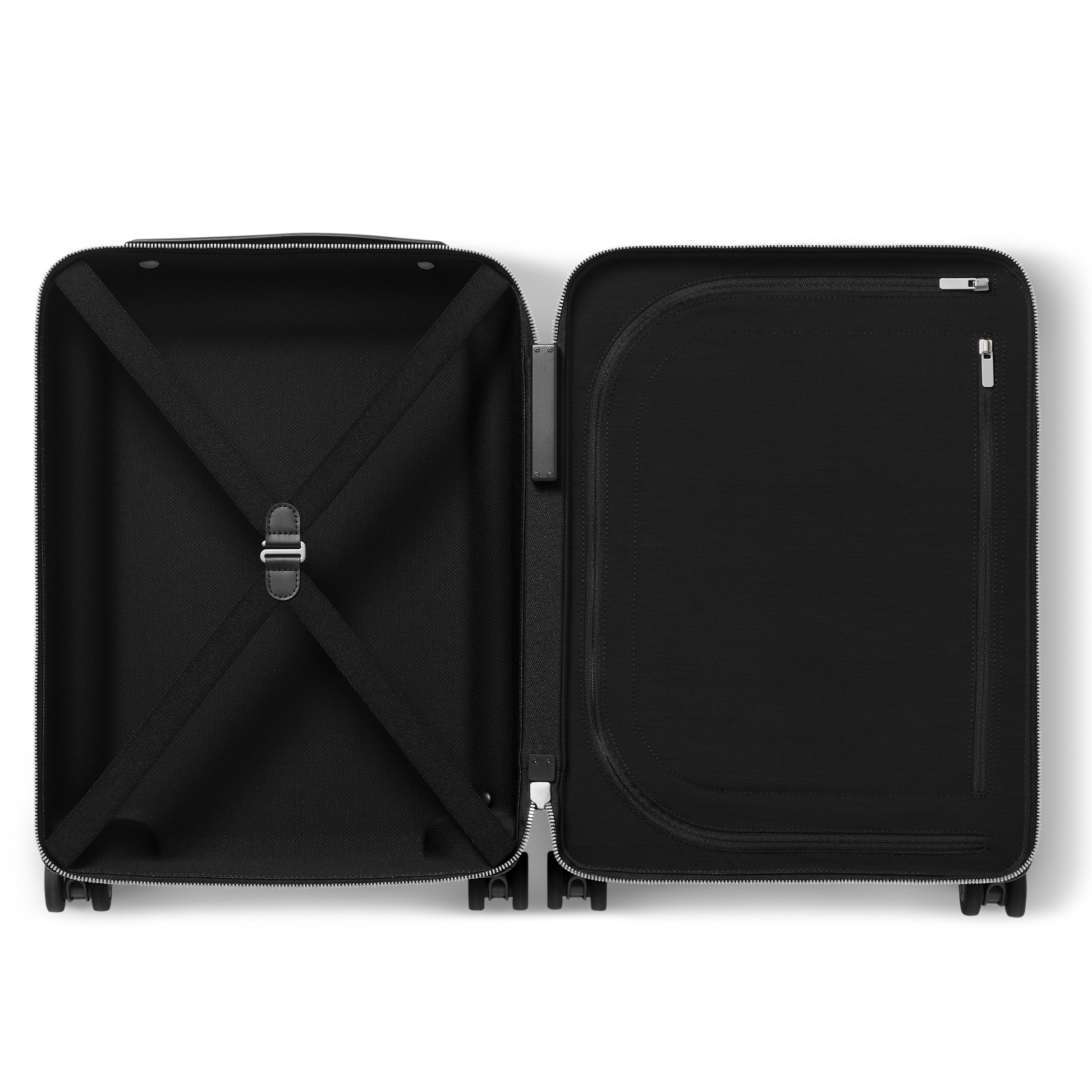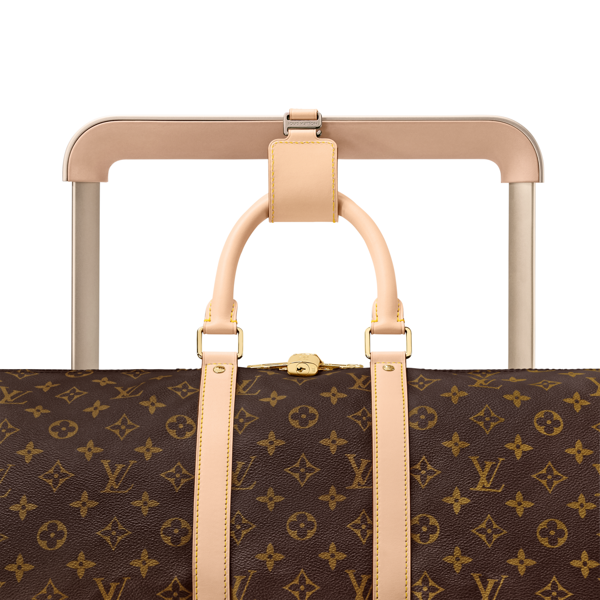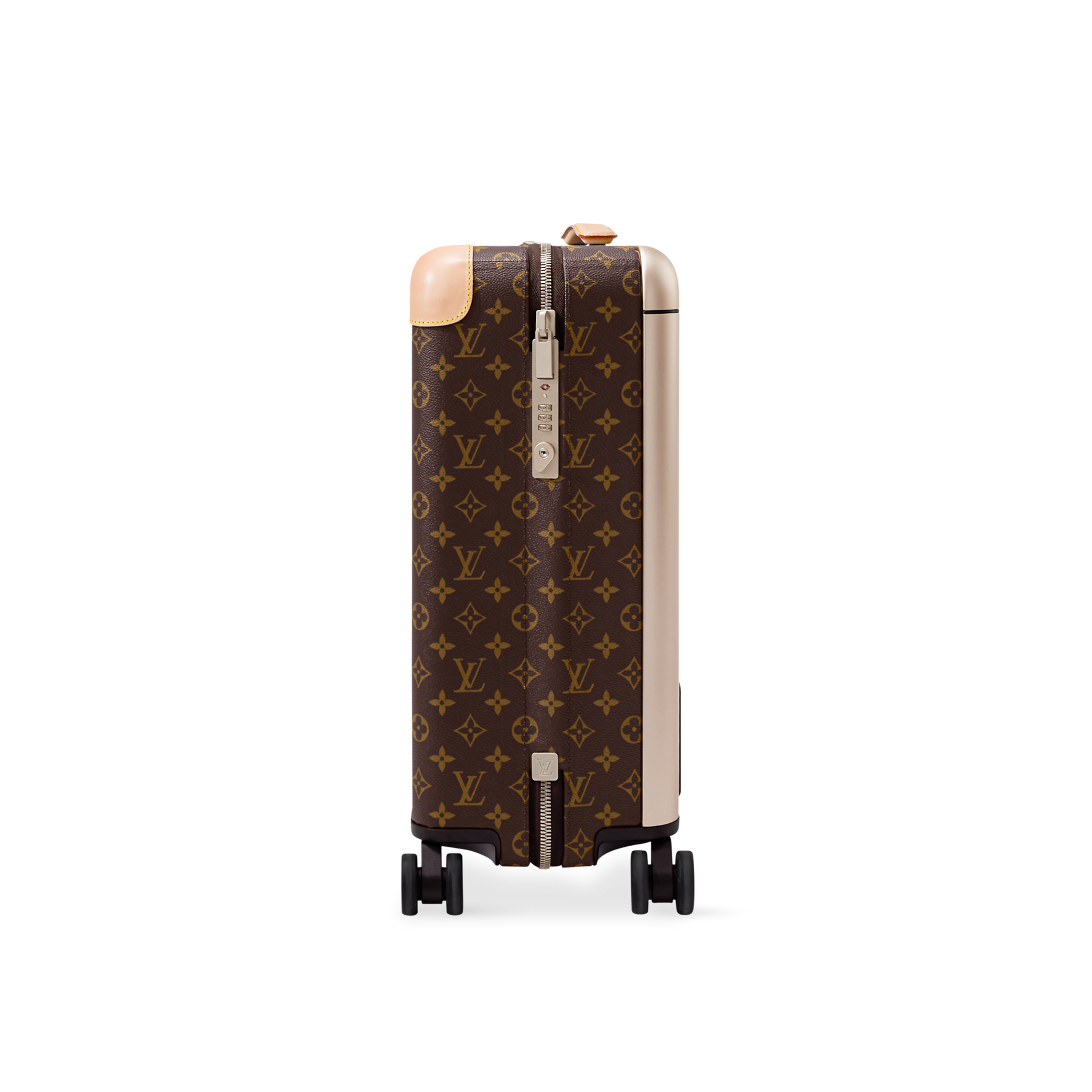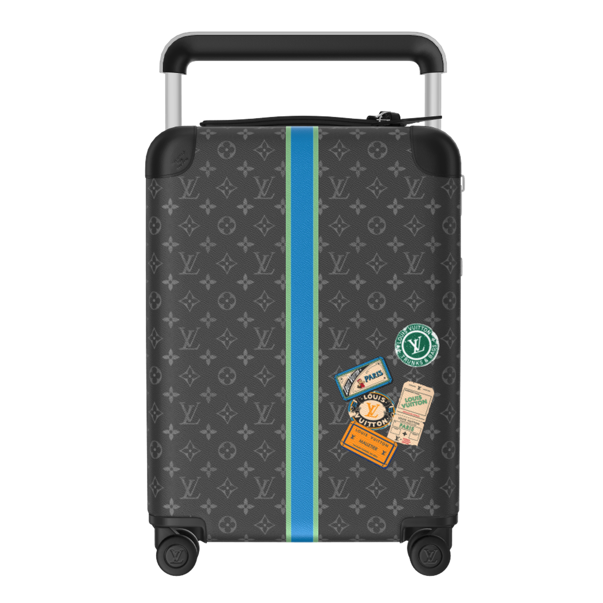 Imagined by renowned industrial designer Marc Newson, this lightweight 4-wheeled carry-on can be personalized as part of the Mon Monogram program. Add stripes, initials and patches to the Monogram canvas to create a unique Louis Vuitton bag. The Horizon 50 rolling case has a completely flat interior thanks to its large external cane, making it roomy.