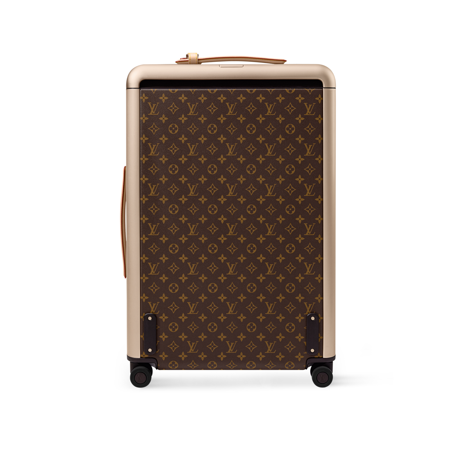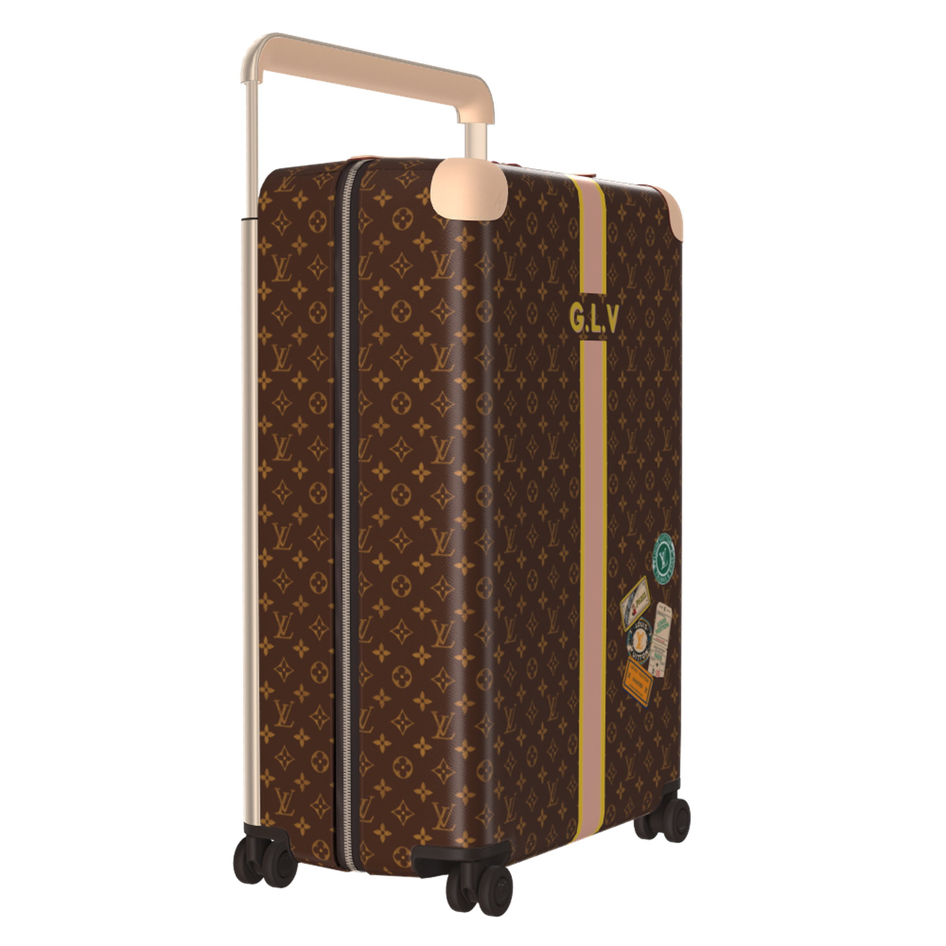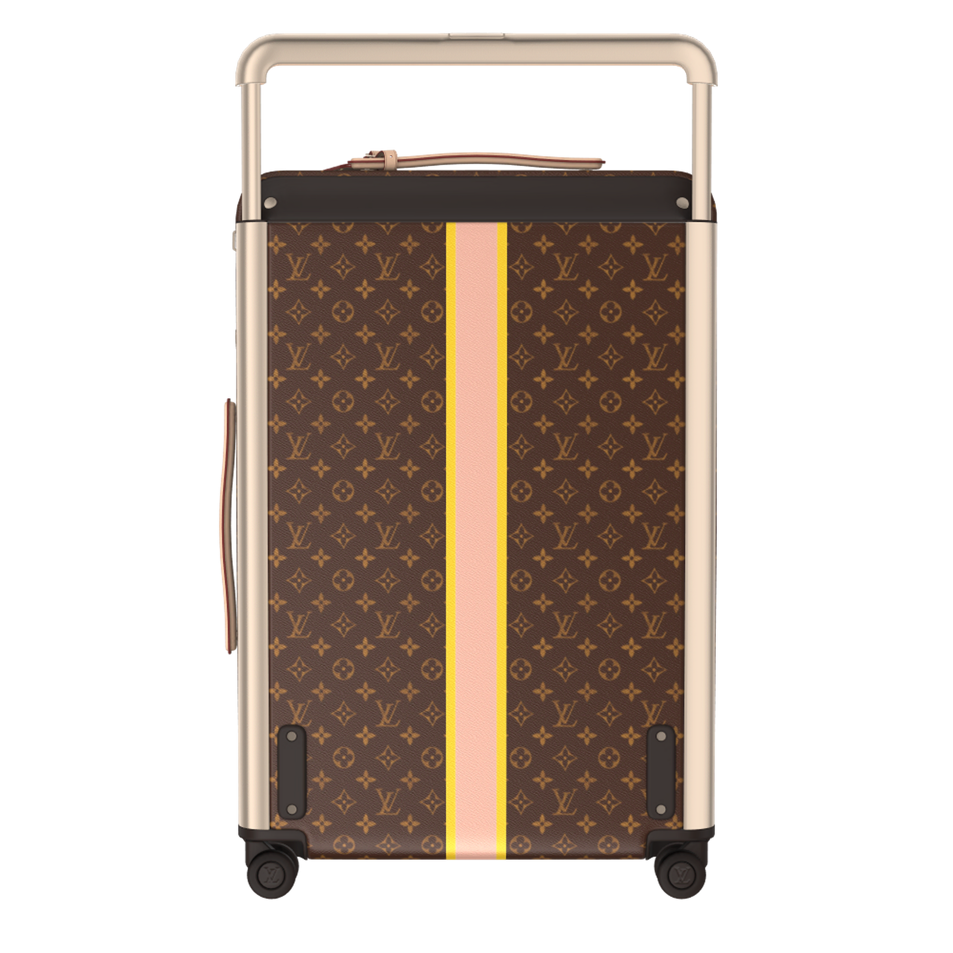 The fruit of a remarkable collaboration between Louis Vuitton and Marc Newson, one of the most influential industrial designer of his generation, the Horizon 70 rolling luggage is fashioned from Monogram canvas with a lightweight, wide trolley system. Part of the Mon Monogram offer, this Horizon can be customized with printed stripes, initials and patches.