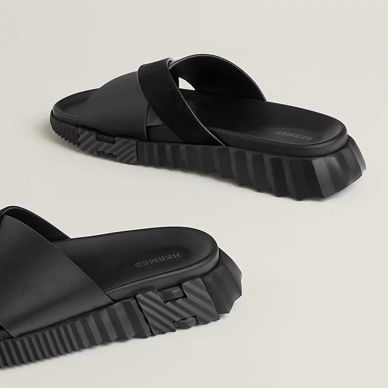 Techno-sandal in suede goatskin.