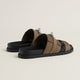 Techno-sandal in suede goatskin with anatomical rubber sole and iconic Kelly buckle.