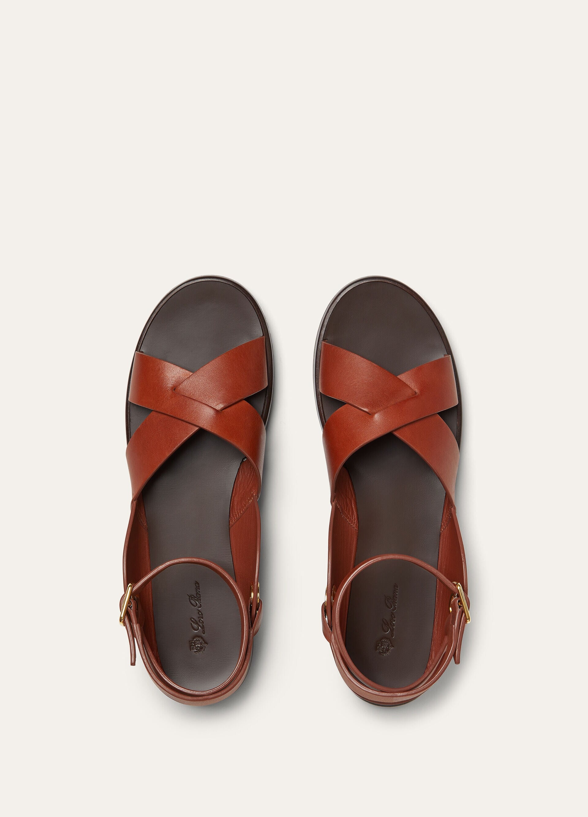 Ideal for everyday summer wear, the flat open-toe Leo sandals exude elegance and comfort with every step. Crafted from Novanappa calfskin with an exceptionally soft handle, they are defined by wide crossover straps that comfortably secure the foot in an effortless fit. A structured insert at the back integrates the ankle straps with their rounded, adjustable buckles.