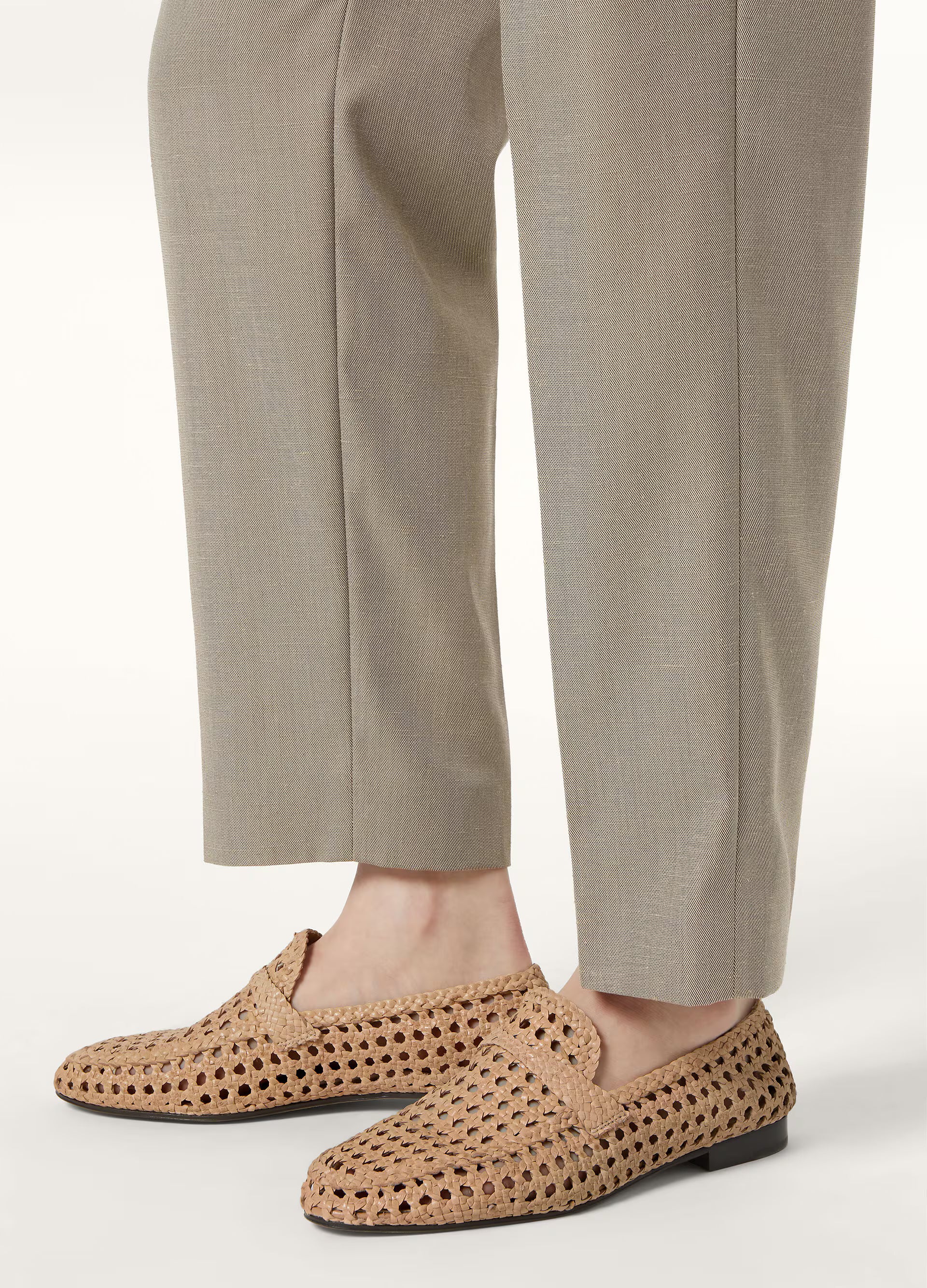 With cues taken from the iconic Summer Charm model, yet with a refined leather sole, the Leon loafers are a quintessential choice for the warmer seasons. They are hand-crafted in a half sacchetto construction for enhanced comfort—each version defined by minute alterations due to the artisanal nature of the workmanship. The uppers are reminiscent of a basket weave and cast an elegant open design.