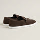 Loafer in suede calfskin with rubber sole and miniature Paris buckle.