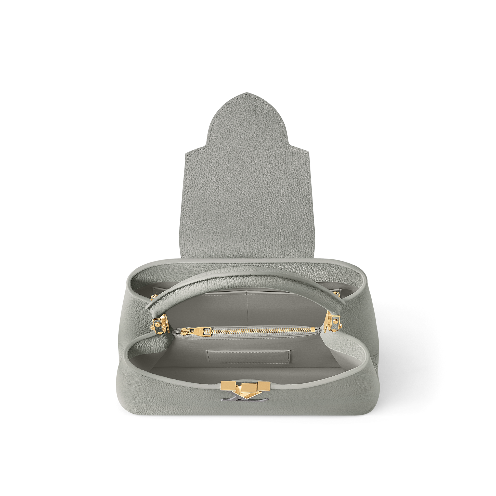 Named for the Rue des Capucines in Paris, where Louis Vuitton opened for business in 1854, the Capucines MM handbag was first introduced in 2013. Superbly crafted from full-grain Taurillon leather, it features a flap which can be worn two ways: outside to reveal a Monogram Flower, or inside to display the leather-wrapped LV Initials. Light enough to carry all day long, by hand, on the shoulder or worn cross-body with the detachable strap.