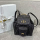 Luxury Black Leather Mini Backpack with Gold Buckle