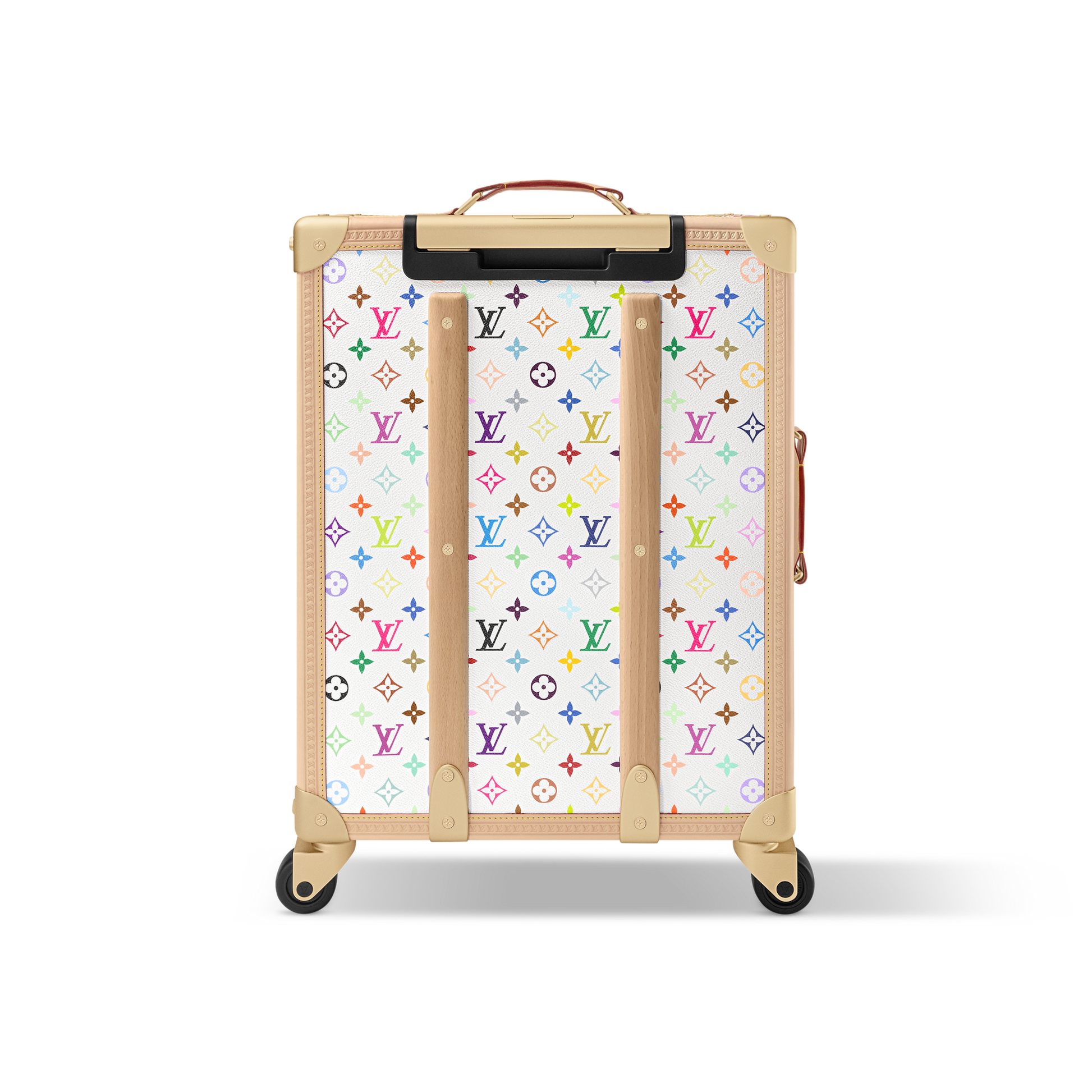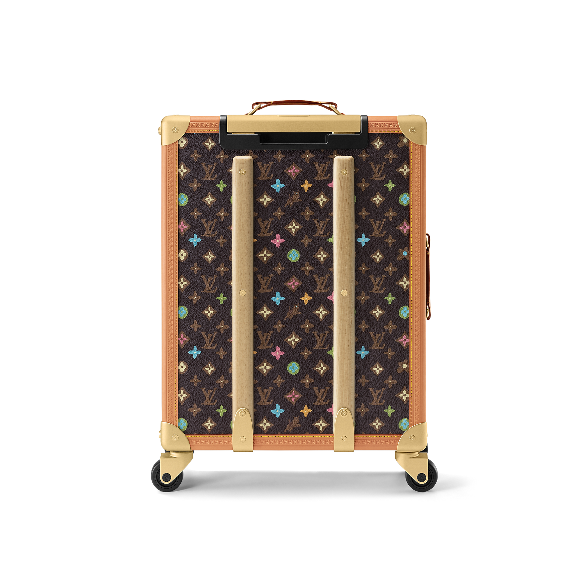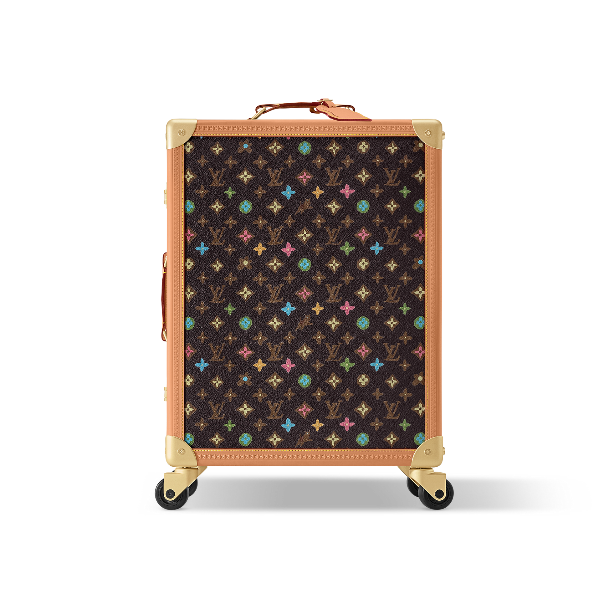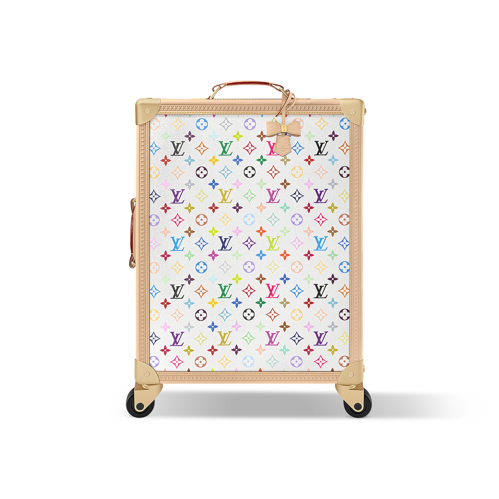 Paying homage to the House’s heritage, the Rolling Trunk is crafted in a smart cabin-sized silhouette framed with leather trims and riveted metal corners that are a nod to emblematic Louis Vuitton travel trunks. The extra slim trolley system and the four wheels offer modern functionality. This edition is signed with a playful multicoloured Monogram motif from the re-edition of the Louis Vuitton x Murakami Collection, complete with a chic bow-shaped key bell as a final signature touch.