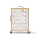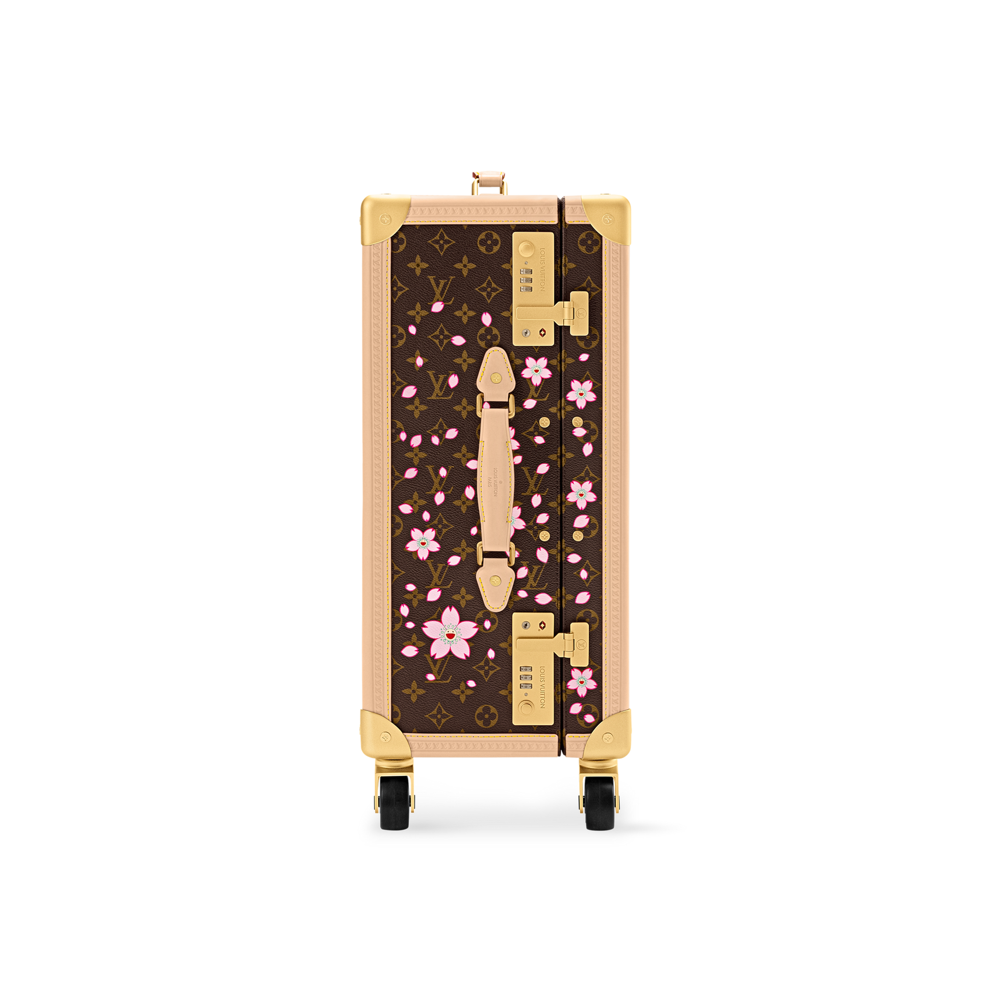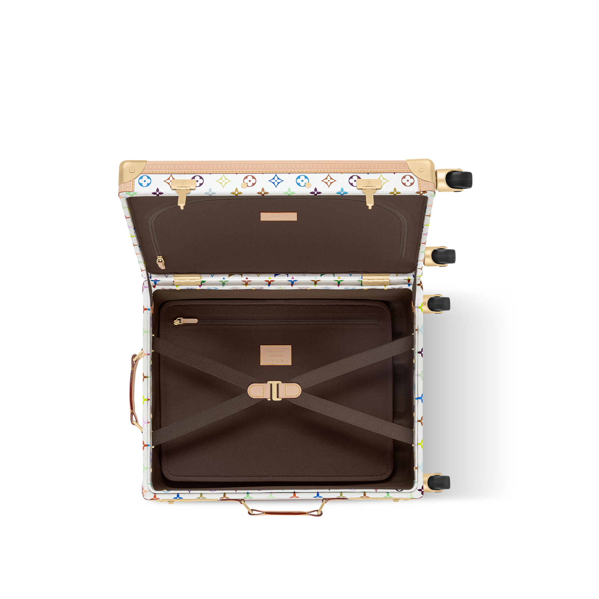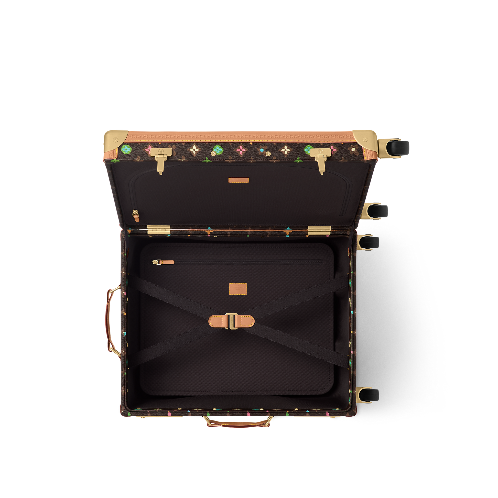 Paying homage to the House’s heritage, the Rolling Trunk is crafted in a smart cabin-sized silhouette framed with leather trims and riveted metal corners that are a nod to emblematic Louis Vuitton travel trunks. The extra slim trolley system and the four wheels offer modern functionality. This edition is signed with a playful multicoloured Monogram motif from the re-edition of the Louis Vuitton x Murakami Collection, complete with a chic bow-shaped key bell as a final signature touch.