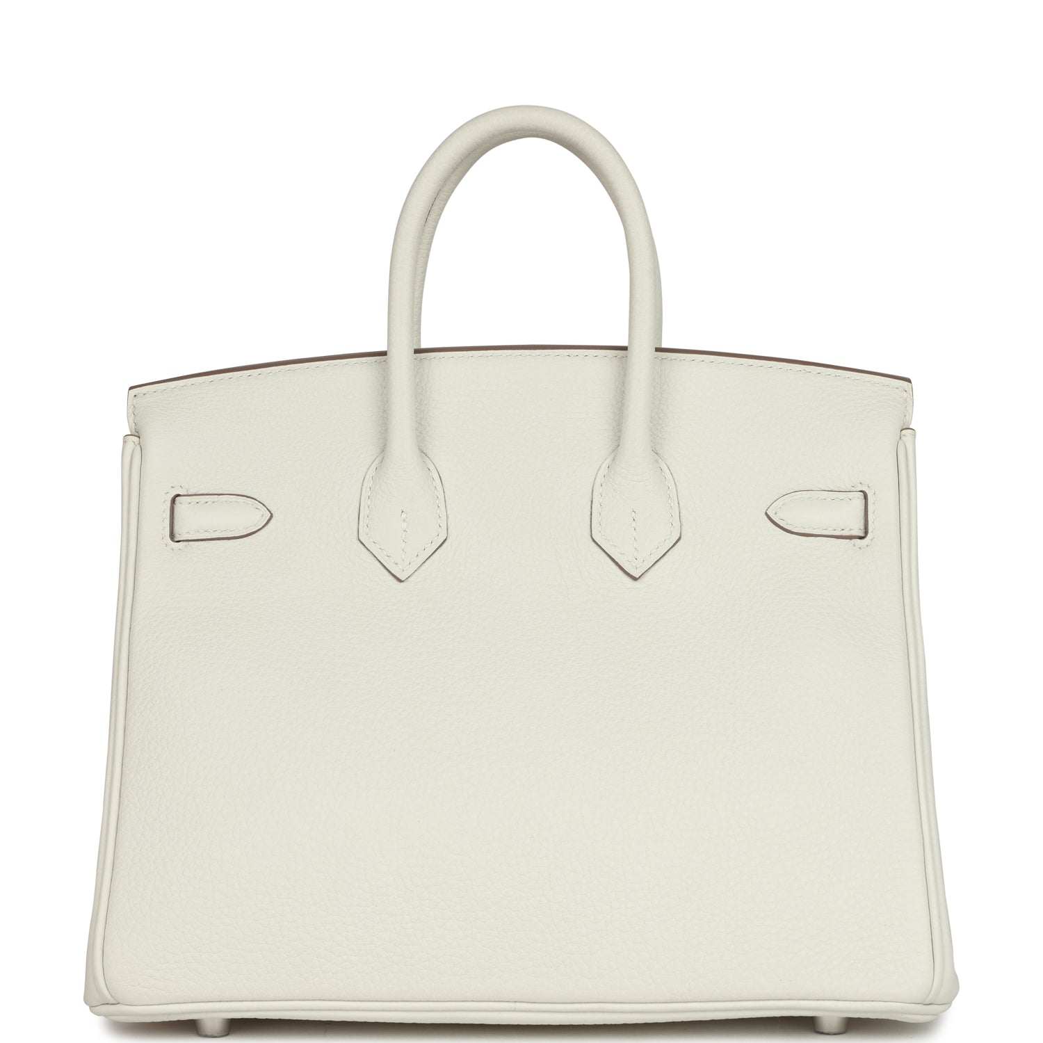 This Birkin is of Mushroom togo leather with palladium hardware and features tonal stitching, front flap, two straps with center toggle closure, clochette with lock and two keys, and double rolled handles.