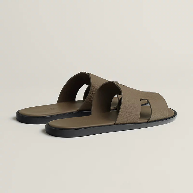 Take off. Let your mind and your feet wander. Inspired by the warm scents of distant shores, the Izmir sandal promises escape, wherever you are. Designed in 2004, it's renowned for its timeless elegance, which has been a source of inspiration throughout time. Its H cut and sleek lines inspire a summer of possibilities.
