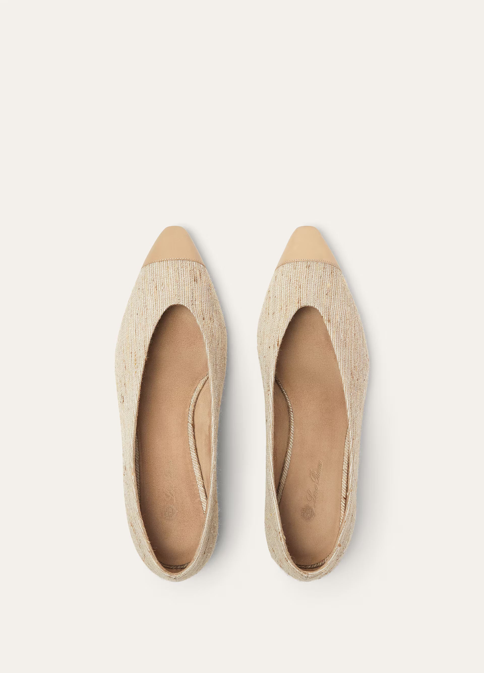 The ideal accent to the silhouette, the Rebecca ballet flats are elegant in shape and fabrication. Complete with a gently rounded, tapered toe, they have an elongated profile rendered in silk-fused shantung – a bespoke fabric with a marked irregular texture and a raw look and feel. The pair is tipped with a contrasting toe in smooth, slightly translucent Luxury Calf.