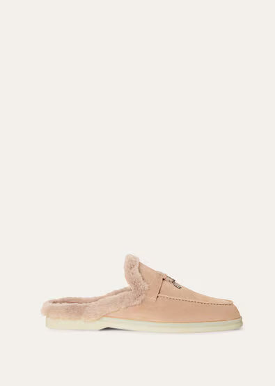 Loafer version of the iconic Summer Charms Walk, featuring saddles with Loro Piana My Charms. Soft fur lining provides warmth and comfort.