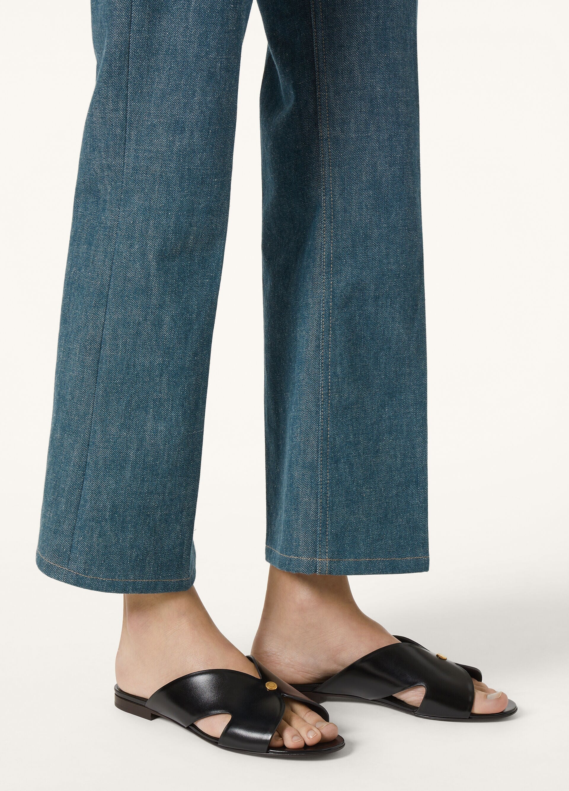An elegant slip-on style, the flat Vera sandal is primed to complete endless summer silhouettes. It is cut from Glazed Calf – defined by a light grain and glossy finish – and has cross-over straps that comfortably wrap around the foot, anchored with light-catching hardware in the centre.